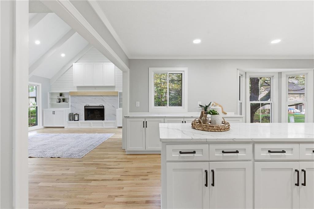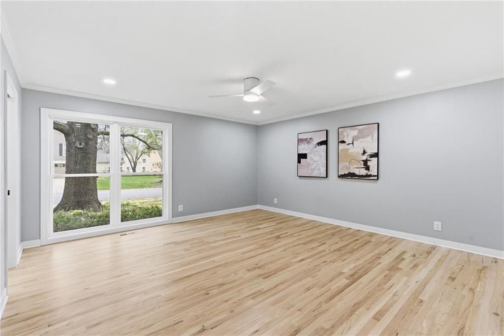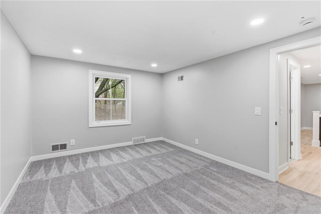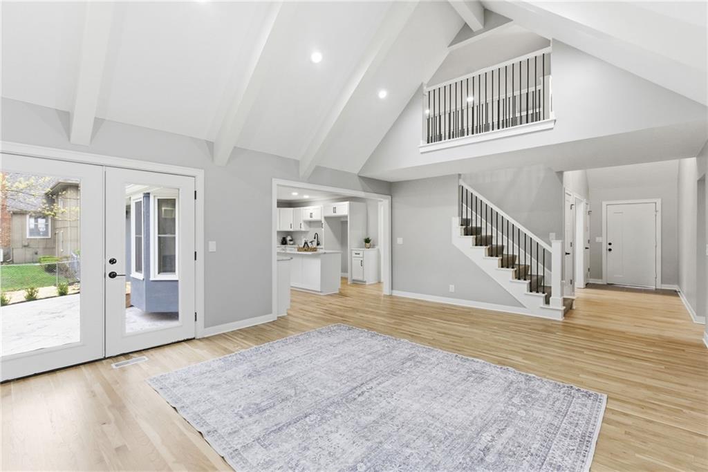 Professional pics coming soon. Welcome to your dream family home in the heart of Leawood, perfectly positioned within the highly sought-after Blue Valley school district, feeding into Leawood Elementary, Leawood Middle School, and Blue Valley North High School. This stunningly transformed residence promises spacious living, making it an ideal retreat for larger families seeking both comfort and luxury. As you enter, you'll appreciate the thoughtfully designed open floor plan that harmonizes functionality with elegance. The chef's kitchen features exquisite custom craftsman-style cabinetry, quartz countertops, and stainless steel appliances—all overlooking a bright and airy living room adorned with soaring vaulted ceilings. The main level also includes a luxurious primary ensuite bedroom, providing a private oasis complete with a spa-like bathroom. A second well-appointed bedroom and full bath cater to guests or family, and the newly designed mudroom offers convenient access from both the garage and the expansive stamped concrete back patio, perfect for outdoor entertaining. Venture upstairs to discover two spacious additional bedrooms, a full bath, and a huge loft living space, ideal for family game nights or a kids play area. The lower level is an entertainer's dream, featuring yet another ensuite bedroom, an additional bedroom and bath, a dedicated media room complete with a wet bar, and a private office space for remote work or study. The exterior of the home boasts a fresh look, with beautiful new lap siding on the front, enhancing its curb appeal, while the remaining three sides feature elegant stucco. The property has also been meticulously enhanced with new landscaping, and freshly applied seed and fertilizer, ensuring a lush green space for children to play and family barbeques to enjoy.