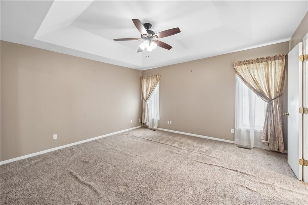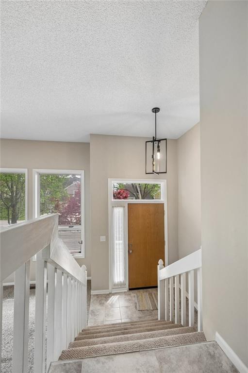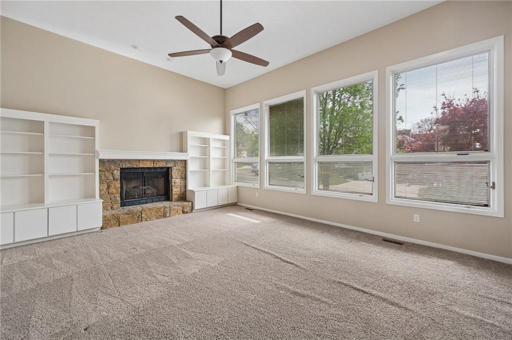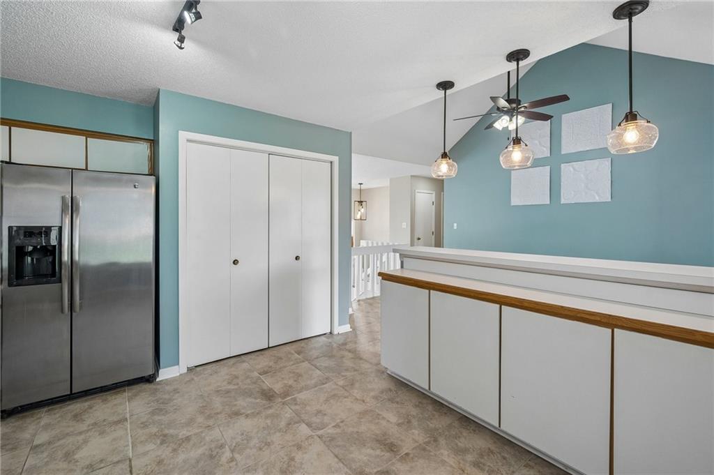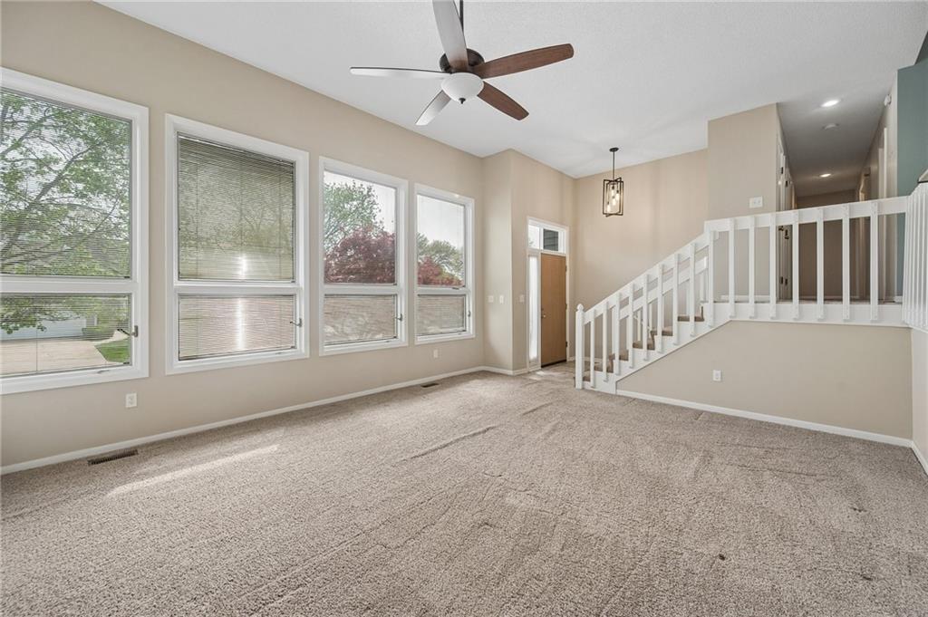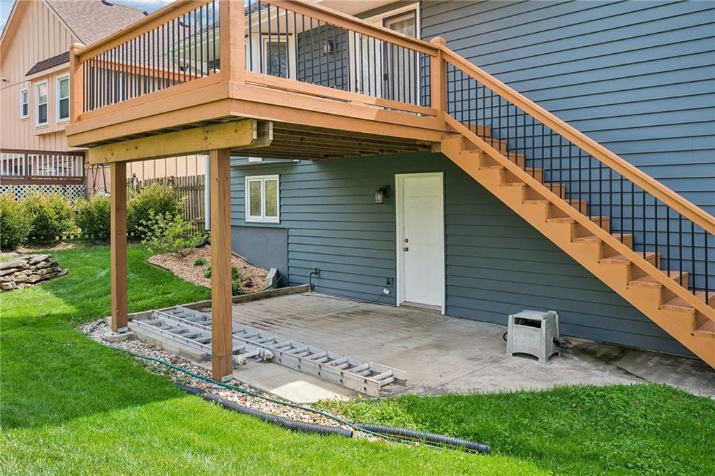 Well-maintained Front/Back Split in coveted Hunters Pointe and Blue Valley School District! Walk in through the Mid-Century modern solid wood front door to an open floor plan featuring large Living Room with 2-story vaulted ceiling, wall of windows, beautiful stone fireplace and built-in shelves on each side. Kitchen includes eat-in area, island, lots of cabinets and stainless appliances – Refrigerator stays with the home. Breakfast area leads to the deck overlooking the fenced backyard, which has areas ready for all your gardening needs. Master Suite has two closets, one being a nice walk-in closet, beautiful ceramic tile in the bathroom, separate shower and soaking tub, and double vanities. Two other bedrooms on the main level have nice sized closets and perfect for kids or a home office. Large Lower Level Family Room/Rec Room is great for movie nights, has a half bathroom, and walks out underneath the deck to a patio. There is also a large sub-basement for extra storage, or finish it to add additional square footage to the home. Oversized garage has plenty of room for vehicles, toys, tools and workbenches. The exterior of the home was wrapped with beautiful maintenance free CedarMAX Super Polymer Insulated Siding. Come see this one soon; it won’t last long!