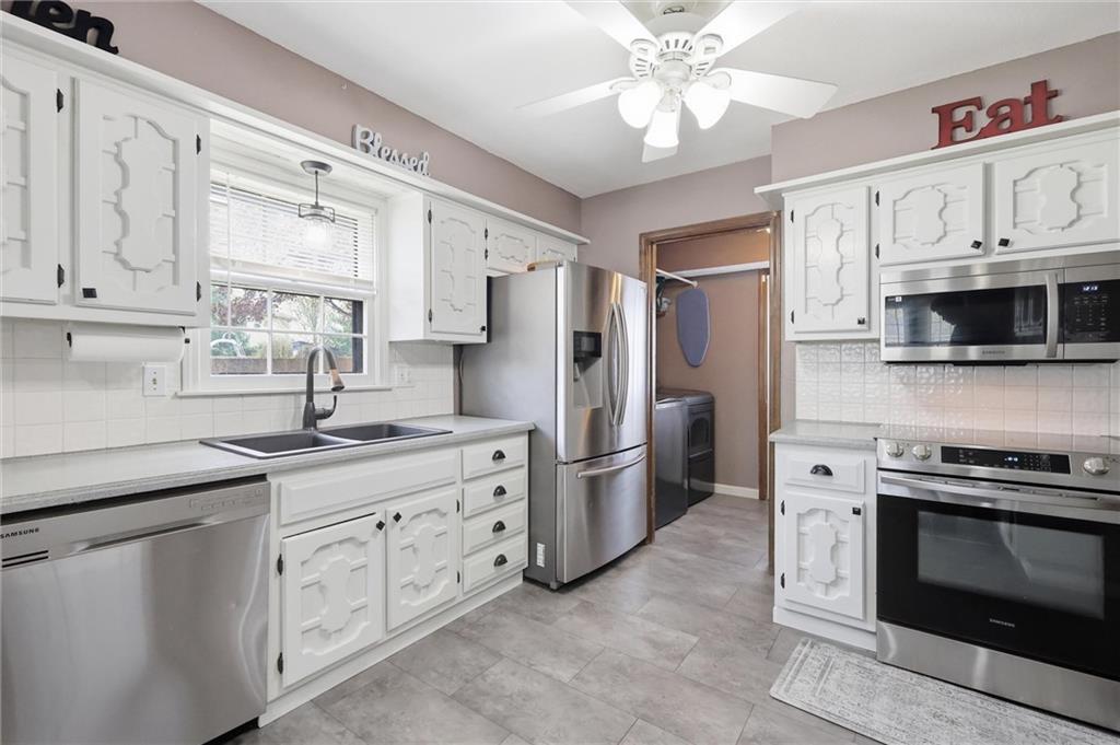 Tucked away on a quiet cul-de-sac in the heart of Blue Springs, this adorable 3-bedroom, 3-bath home is the perfect blend of charm, comfort, and convenience. Recently refreshed with a stylish new paint job, durable LVP flooring, and a brand-new concrete patio, this home is move-in ready and made for easy living. Step inside to find soaring ceilings in the living room that create an open, airy feel—perfect for both relaxing nights in and entertaining guests. The thoughtful layout offers ultimate convenience with laundry located just off the kitchen and on the bedroom level. Out back, you’ll fall in love with the spacious yard—ideal for summer evenings around a firepit, weekend barbecues, or simply enjoying time outdoors playing catch or letting pets roam freely. Located in an award-winning school district and just minutes from everything Blue Springs has to offer—grocery stores, restaurants, parks, and community amenities—this home truly has it all. Seller is also offering a home warranty with an appropriate offer! Charming, updated, and in an unbeatable location—this is one you won’t want to miss!