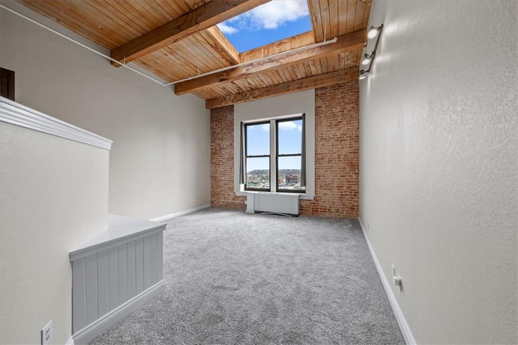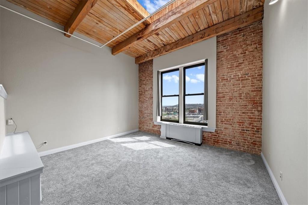 TOP FLOOR STUDIO with incredible skyline views. Welcome to your modern rustic escape above the city at the iconic Soho Lofts. This loft is the ultimate urban lifestyle, blending character, style, and not to mention the location into one unforgettable space. Step inside and you’re immediately greeted by soaring 15-foot ceilings and an abundance of natural light pouring in, creating an open, airy feel that instantly feels like home. The thoughtfully designed layout features a raised kitchen, exposed beams, and beautiful brick walls that bring warmth and texture throughout. Additional highlights include a skylight, all-electric living, and a versatile pull-out queen trundle bed, perfect for maximizing your space. Enjoy access to an impressive lineup of amenities, including a rooftop deck with stunning views, fitness center, sauna, club room, and multiple laundry facilities (one conveniently located on the 4th floor). Several amenities, including the gym, laundry, and club room are currently being renovated. Step outside and experience true convenience of local favorites like The Glam Room and The Phoenix Jazz Club, with easy access to the River Market, Crossroads District, Power & Light District, the highly anticipated Rock Island Bridge, and the KC Streetcar. Covered garage parking is available for lease through Denison Parking with direct building access, starting at $140/month, with additional nearby options available. Storage units may also be available through the HOA. Soho Lofts allow 30+ day rentals, making this not only a stunning place to live but also a strong investment opportunity. This is loft living at its finest, light, bright, full of character, and located in the heart of everything Kansas City has to offer.