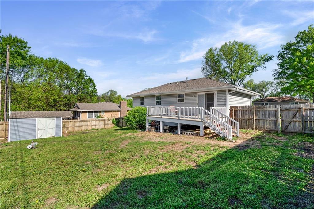 Beautifully maintained home in the highly desirable Piper area of KCK! Ideally located just minutes from the Legends Outlets Kansas City, Kansas Speedway, Hollywood Casino at Kansas Speedway, and the proposed future Kansas City Chiefs stadium project, with quick access to major highways for an easy commute to Kansas City, while still tucked away in a quiet neighborhood. This home features 3 bedrooms and 2 full bathrooms, along with a finished basement that includes a non-conforming bedroom ideal for a home office, or guest space, plus an additional living area perfect for movies, gaming, or entertaining. Enjoy the outdoors with a brand new oversized back deck, a fully fenced yard with privacy fencing, and space for gardening, play, or pets. Additional highlights include updated flooring throughout much of the home, a newer roof, a newer water heater, and a storage shed for added convenience. Move-in ready with the space, location, and updates today’s buyers are looking for. Schedule your showing today!