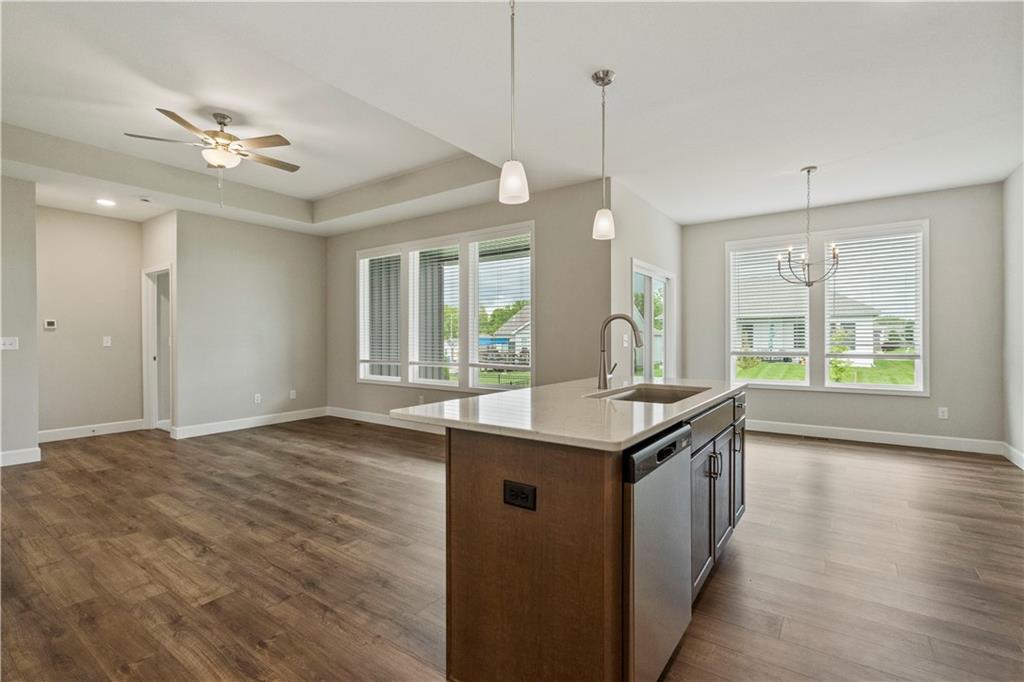 The Kinley by Ashlar Homes is a beautifully designed straight ranch plan offering 3 bedrooms and 2 full baths, thoughtfully crafted for comfortable, main-level living. This home boasts impressive curb appeal with a striking stucco front complemented by durable James Hardie siding on the sides and rear, plus a covered patio perfect for relaxing or entertaining. Inside, you’ll find stylish upgrades throughout, including quartz countertops and a tile backsplash in the kitchen, along with cabinets accented by crown molding. Luxury vinyl plank flooring flows seamlessly through the entry, great room, dining area, and kitchen, creating a cohesive and modern feel. The spacious primary suite features a private bath complete with tile flooring and a tiled shower with a built-in seat, offering both comfort and convenience. Additional highlights include an insulated garage and a garage door opener. Enjoy resort-style community amenities including a pool, playground, pickleball and basketball courts, disc golf, firepit, and a stocked pond for fishing—perfect for an active and social lifestyle. Home is under construction with an estimated completion date of August 2026 - photos are of the same plan, but will have different finishes