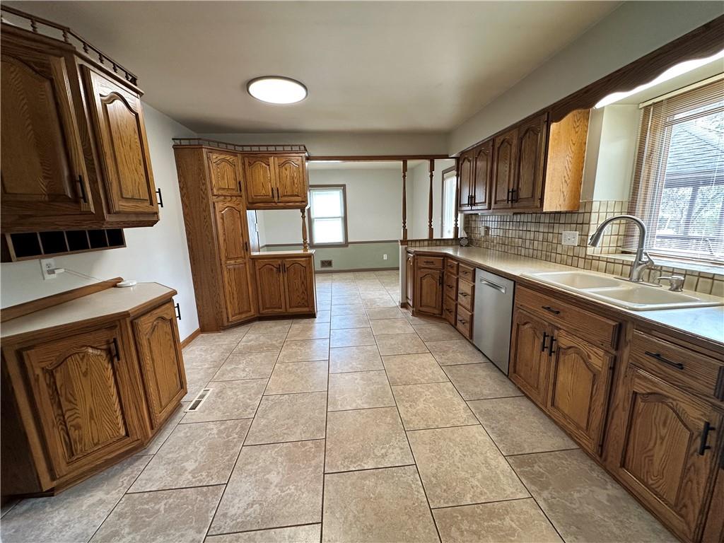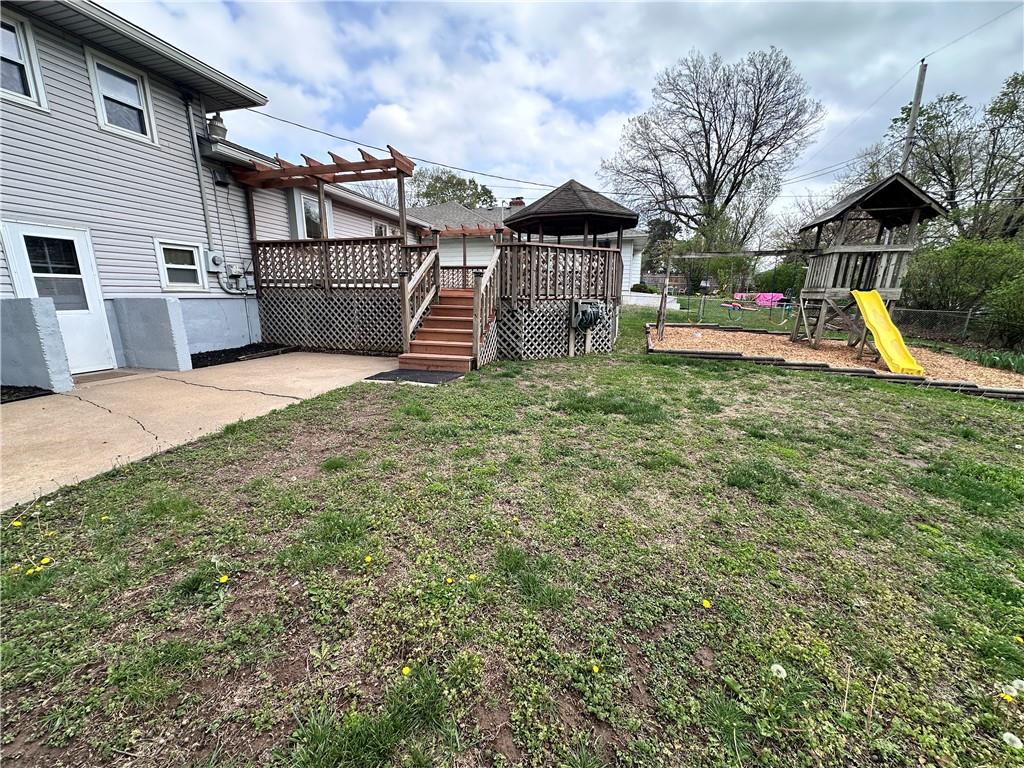What a Beautiful 2300 Sq. Ft. home with 4 Nice Sized Bedrooms, 2 1/2 Baths. NEW ROOF to be installed within 4 weeks. The home features a Lovely living room with built-ins, large kitchen with plenty of beautiful wood cabinets, ceramic tile floor and a formal dining room that also opens to the Large deck and fenced yard with play area. tiled entryway with 2 large closets . The Primary bedroom has a private bath with Onyx shower. The full hall bath has tile floor and walls a jetted tub and shower. Each bedroom has ceiling fan and carpeting and nice size closets. The lower level features a half bath and nice family room that walks out to the back yard and patio. The lowest level has a large Rec room about 500 sq ft and also has a kitchen type area with sink. Home has vinyl siding, 2 car garage with openers, extra 3rd parking pad for RV or trailer. Half drive just replaced. Thermal Windows, fresh paint entire interior, vinyl siding exterior. A wonderful house to make yours to call home!