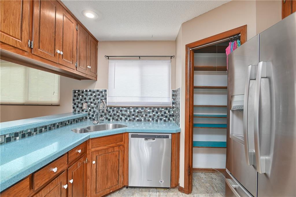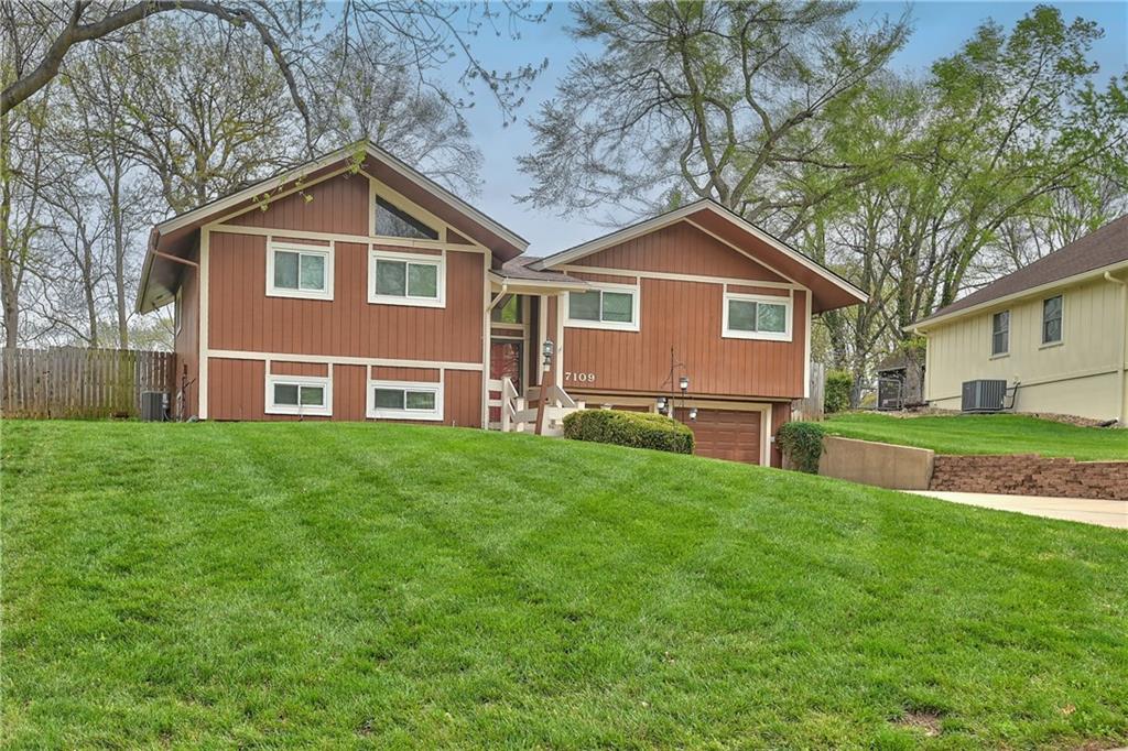 This 3-bedroom, 4-bathroom home in Raytown offers a unique blend of character, space, and functionality with a layout that stands out from the typical cookie-cutter design. From the moment you arrive, you’ll notice the inviting curb appeal, spacious driveway, and attached two-car garage. Inside, the home opens up to a bright and airy main living area featuring vaulted ceilings, warm wood accents, and a striking fireplace that anchors the space. Large windows and sliding glass doors bring in natural light and create an easy connection to the backyard, making the main level feel open and welcoming. The kitchen offers plenty of cabinet storage, generous counter space, and a functional layout that flows seamlessly into the dining area—ideal for everyday living or hosting guests. Just off the main living space, you’ll find well-sized bedrooms, including a primary suite setup, along with multiple bathrooms that provide flexibility and convenience for a variety of living situations. Downstairs, the home continues to deliver with additional living space perfect for a second family room, recreation area, or home office setup. With four bathrooms total, there’s no shortage of functionality throughout the home. Step outside to a fenced backyard with room to relax, entertain, or make your own outdoor vision come to life. If you’re looking for a home with solid bones, distinctive style, and room to personalize, this Raytown property is one worth seeing in person.