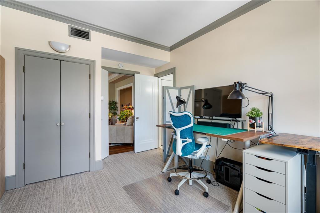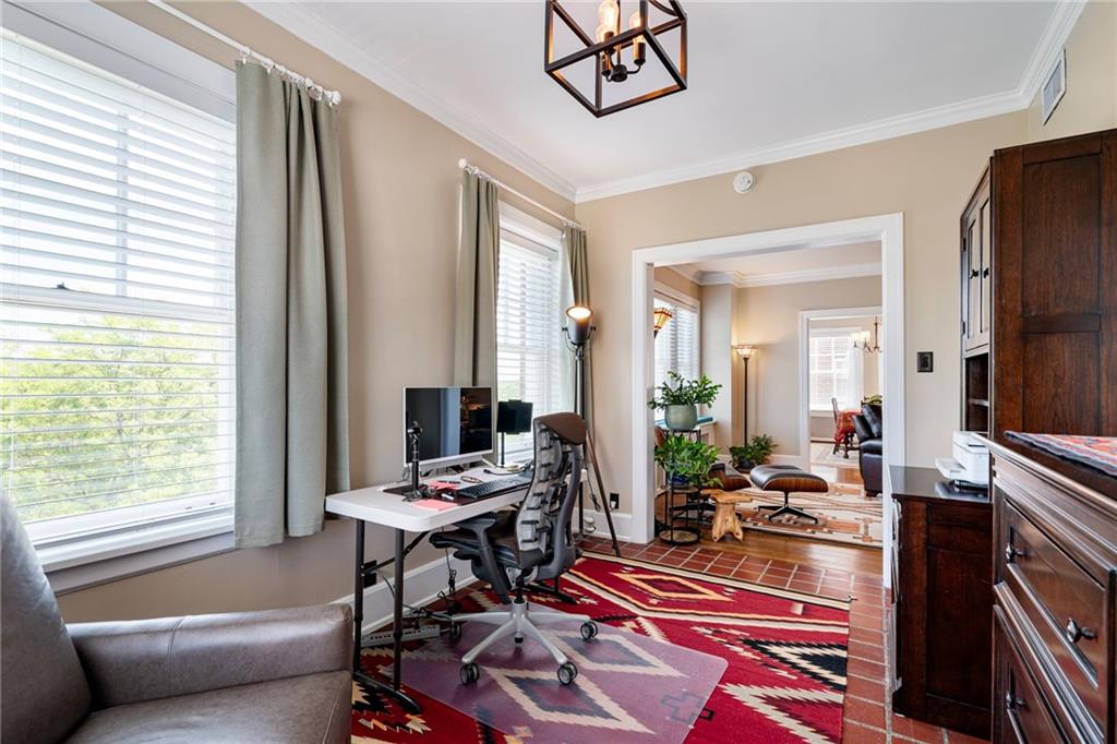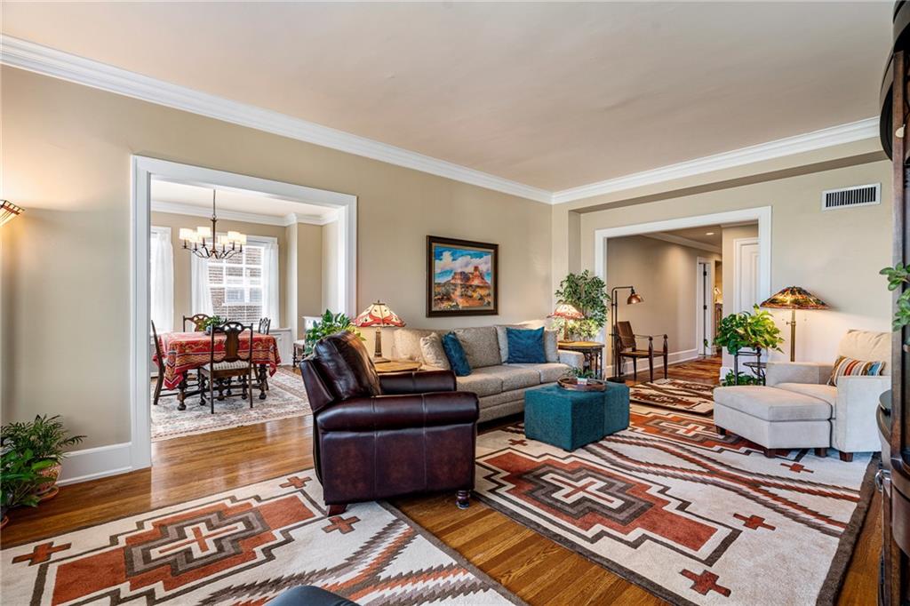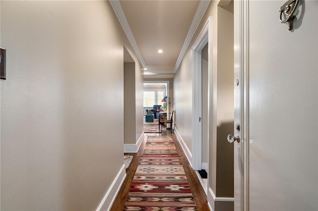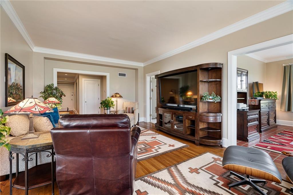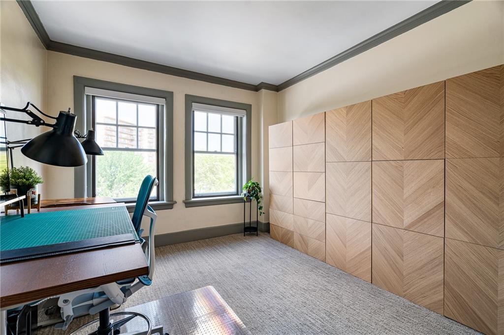 ELEGANT, HISTORIC, EXCEPTIONALLY LOCATED! This spacious two-bedroom, two-bathroom condominium overlooks Southmoreland Park and sits in one of Kansas City's most culturally vibrant neighborhoods--just steps from the iconic Nelson-Atkins Museum of Art. Enjoy the convenience of urban living with easy access to the Country Club Plaza, two nearby streetcar stops, and an easy 15-minute walk to multiple colleges, grocery stores, restaurants, museums, coffee shops, medical facilities, and public parks. Inside you'll find a beautiful blend of classic architecture and comfortable living. Original hardwood floors, elegant crown molding, high ceilings, and oversized windows create a warm, inviting atmosphere filled with natural light. The smart layout includes two spacious bedrooms, a flexible den, a full laundry room, a walk-in pantry, and a large eat-in kitchen that flows into a formal dining room--ideal for both quiet evenings and hosting guests. A deeded garage parking space adds to the convenience of this exceptional home. Don't miss your chance to own a piece of Kansas City history in an unbeatable location!