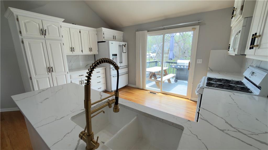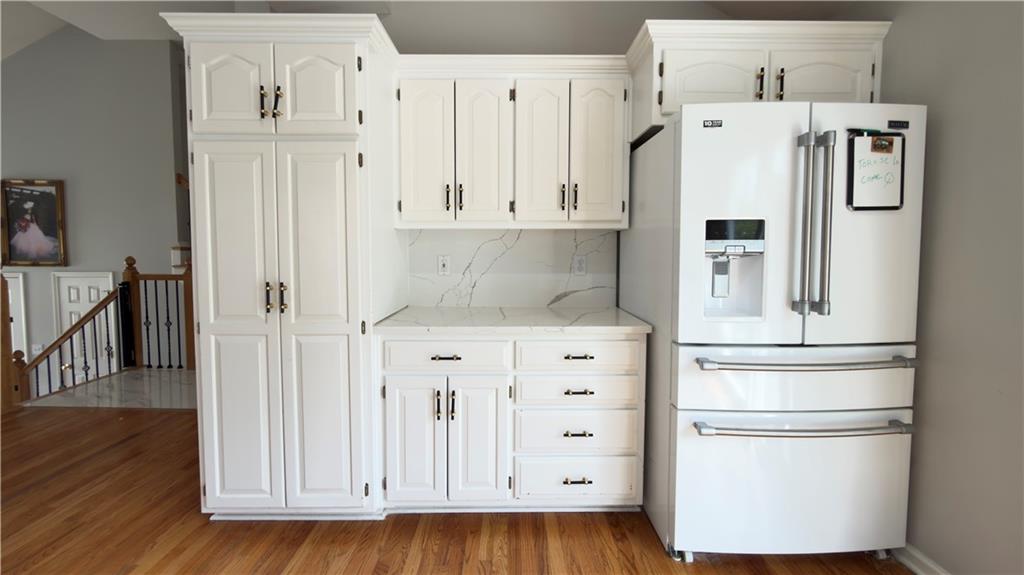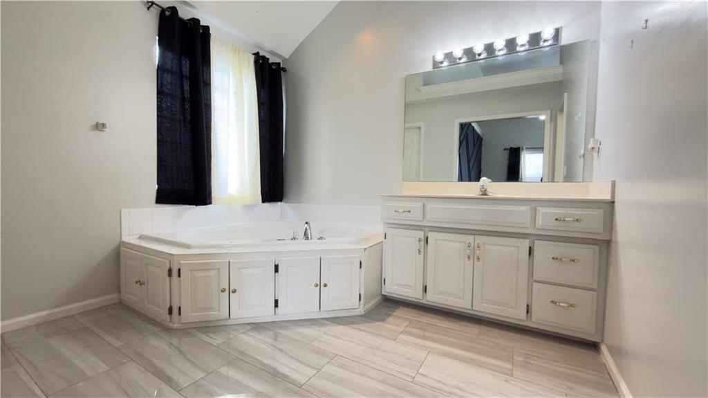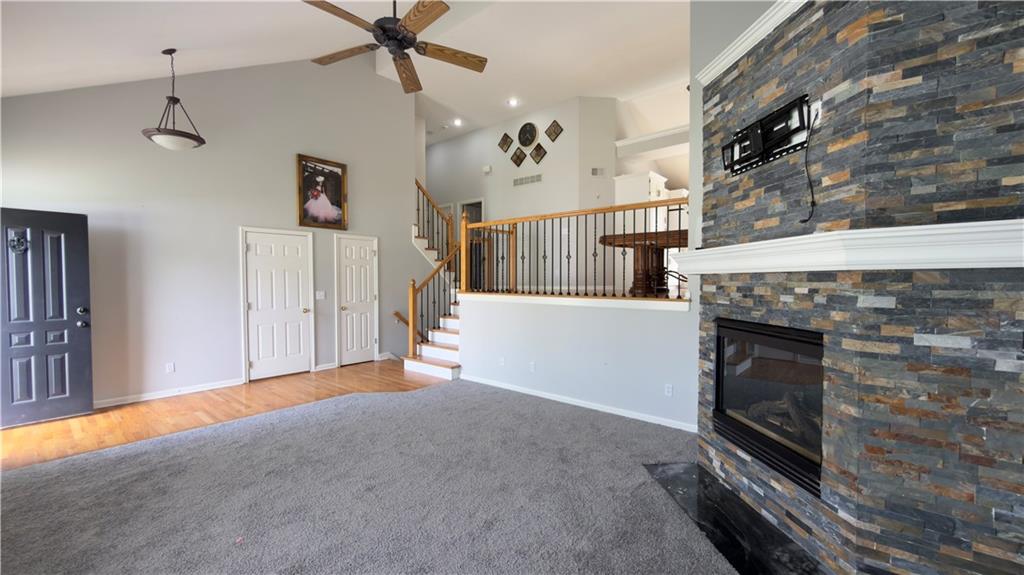This spacious and well-maintained home offers both comfort and functionality throughout. The living room features beautiful hardwood floors, a cozy fireplace, and a stylish accent wall that adds character to the space. The kitchen is open and practical, with granite countertops, ample cabinet space, a pantry, updated light fixtures, and continued hardwood flooring for a seamless flow. The primary suite stands out with its tall ceilings, ceiling fan, walk-in closet, and a private bathroom complete with a relaxing whirlpool tub. The main bathroom includes a long vanity, providing plenty of space for daily routines. Ceramic tile flooring runs through the hallways, adding durability and easy maintenance. With multiple bedrooms and bathrooms, there’s plenty of room for everyone. The finished basement offers even more versatility, including a secondary kitchen area—perfect for extended living, guests, or entertaining. Overall, this home combines space, comfort, and thoughtful features, making it a great fit for a variety of living needs.