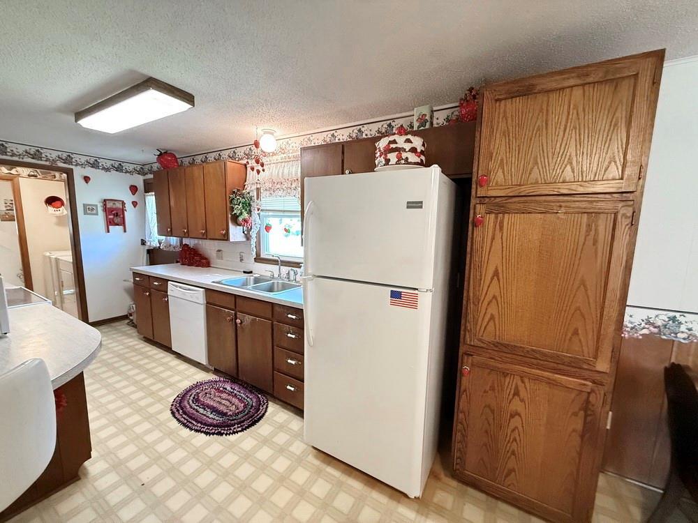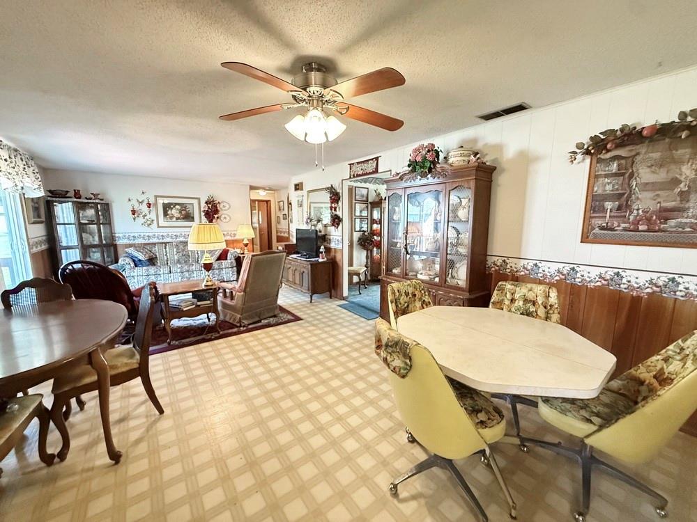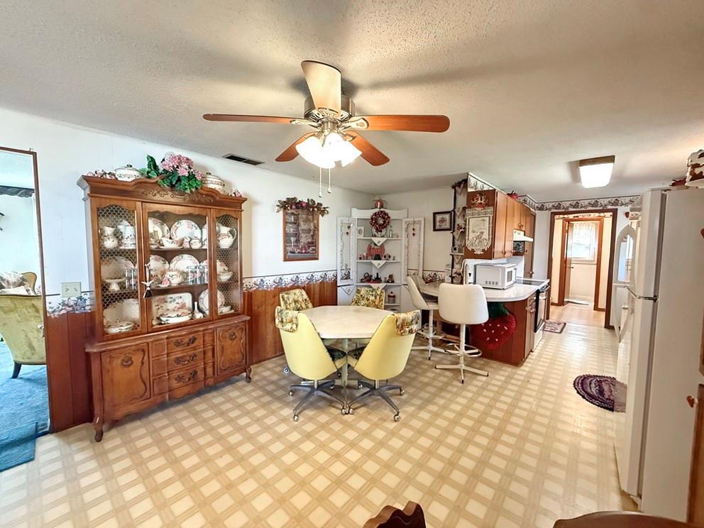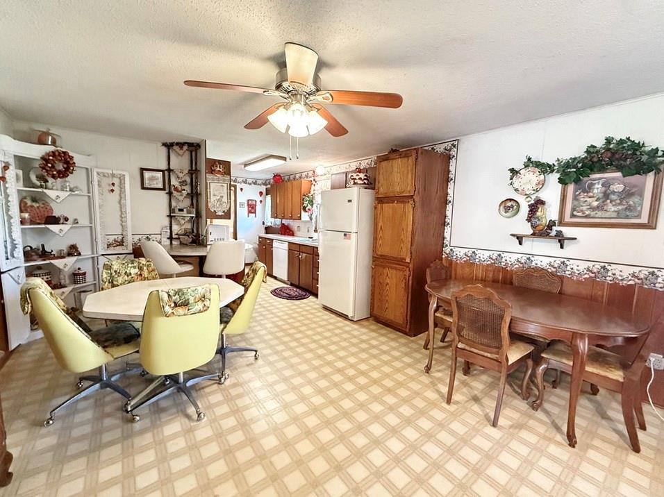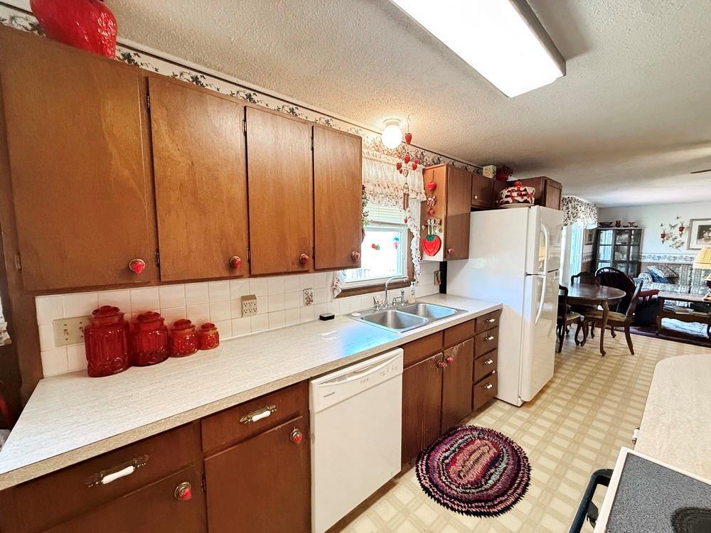 Located on the west edge of El Dorado Springs near the golf course, this spacious 3 bedroom, 1.5 bathroom home offers 1,570 sq ft of comfortable living space with great potential to make it your own. The home features a functional layout with both a formal living room at the front—highlighted by large windows that provide abundant natural light—and an informal family room that creates a more relaxed, everyday living space. The family room flows seamlessly into the open kitchen & dining area, offering a practical setup for gatherings & daily living. The kitchen includes wooden cabinetry, a convenient dining bar for added seating, and a classic window over the sink overlooking the backyard. All three bedrooms are generously sized, providing comfortable space for rest & flexibility for your needs. The home includes one full bathroom along with a half bath for added convenience. Step outside from the family room onto the back deck, perfect for outdoor dining or simply enjoying the view of the backyard. The yard features established perennial flowers, adding natural beauty throughout the seasons, along with a garden shed for additional storage. A 2-car attached garage provides convenient parking & extra space. Schedule a showing on this solid home that offers an excellent opportunity for updates to match your style.