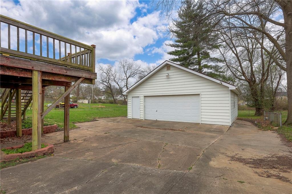 This well-maintained home is move-in ready and waiting for its next owners. Situated on a spacious half-acre lot in the heart of North Kansas City, the property offers 4 bedrooms, 2 bathrooms, and over 1,460 square feet of comfortable living space. Recent updates include fresh interior paint, new luxury vinyl flooring in the kitchen and basement, and modern lighting fixtures throughout. The main level features beautiful hardwood floors, a bright and open living area, and an updated bathroom with a walk-in shower. The kitchen is equipped with stainless steel appliances and opens to a large deck—perfect for relaxing or entertaining while overlooking the peaceful backyard. The finished walkout basement provides additional living space. An oversized detached two-car garage with a dedicated workshop area offers ample space for storage and projects. With a great home, generous lot, and a highly desirable location, this property is a must-see.