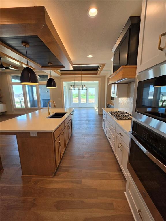 Crestwood Custom Homes is thrilled to introduce their exquisite Sienna reverse 1.5-story plan to Prime Land Development Co.'s exciting new low-maintenance community, Prairie Canyon! This low-maintenance lifestyle includes professional lawn care, seeding, mulching, tree and shrub trimming, plus snow removal for accumulations over two inches—leaving you more time to enjoy life. Step inside to a captivating central great room featuring a warm fireplace, soaring ceilings accented by elegant wood beams, and an open flow into a generous kitchen boasting an oversized island, a stunning butler's pantry, and a cleverly concealed hidden pantry. The inviting sunroom, just off the dining area, bathes the space in natural light and offers the perfect spot for relaxation any time of year. Outdoor enthusiasts will appreciate the covered deck, which has stunning views of the valley. The luxurious primary suite, thoughtfully placed on the main level, includes a spa-inspired bath complete with a deep soaking tub, a zero-entry shower featuring dual showerheads and a built-in bench. The bright, finished walkout lower level provides two additional bedrooms, a full bathroom, a handy walk-up bar, and expansive open areas perfect for entertaining, family gatherings, or unwinding. Large windows flood the space with natural light. This home is an absolute must-see—schedule your tour today before it's gone!