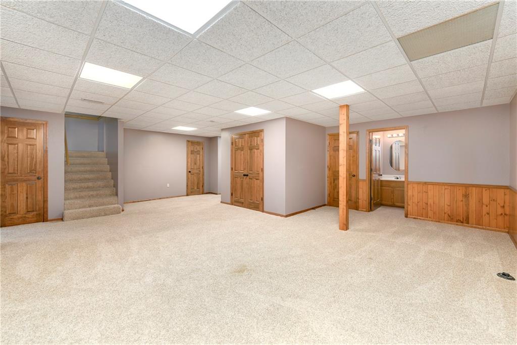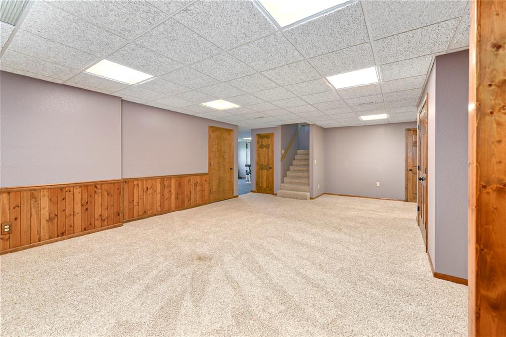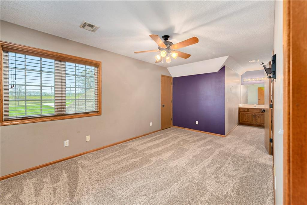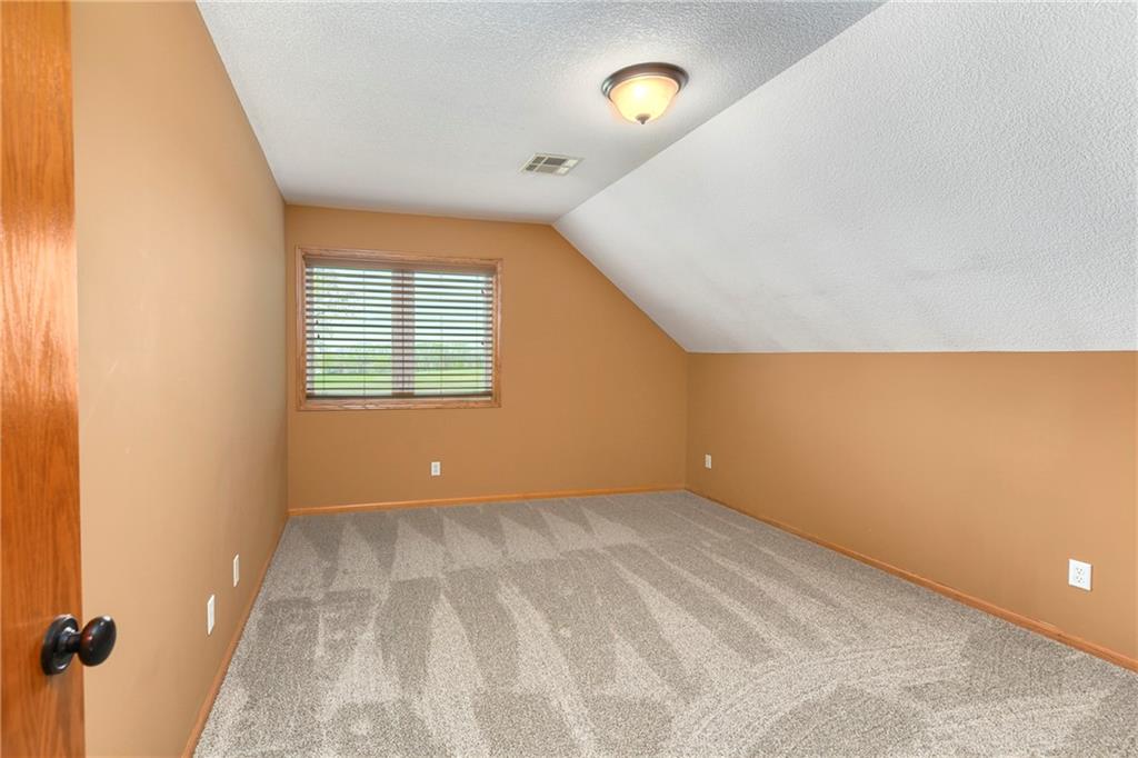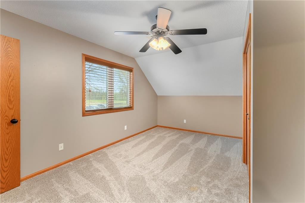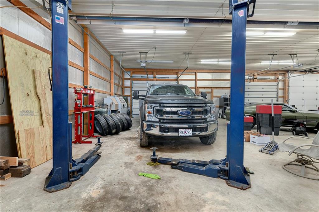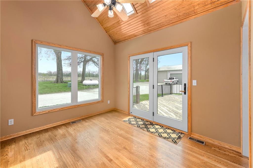 Escape to the peace of the countryside in this custom built home on 24 acres. A fully stocked pond with Bass, Crappies, Perch, Bluegill, and Catfish provides the perfect place to relax while watching the sun set. The entry opens to a large great room with heat circulating wood burning fireplace and 13' ceilings with beautiful crown moulding. There are two dining areas (one is currently being used as an office). The kitchen has many cabinets, pantry, island with cooktop, Granite countertops, tile backsplash, and wood floor. The primary suite is large and includes the following amenities - a double vanity, shower, whirlpool tub, linen closet, and walk-in closet. The two upstairs bedrooms are generous size with a shared bathroom. There is an office that could be converted into another bedroom/play area/craft room - the options are endless. There is a storage area above the garage off one of the bedrooms. The finished walk-out lower level has so much to offer with large family room, gym/exercise room (could be converted into a bedroom), full bath (with walk-in closet for guests), storage area (16.11x11.6), and 3rd car garage (14.3x11.2). The home was remodeled in 2008 with new vinyl siding, windows, roof, granite countertops, & refinished hardwood floors. The 60x40 outbuilding includes 100amp electrical service, insulated interior, concrete floor, water, radiant heat, pegboard/workbench, large overhead door for RV, & BONUS - 9,000 lb vehicle lift. There is a lean-to (40x12.6) on the back of the outbuilding. Located just a little under 10 minutes from I-70, this property offers the perfect balance of rural privacy and convenient access to town and Kansas City. Inspections welcome but selling "AS IS". The two gas tanks on the East side of the outbuilding are not staying.