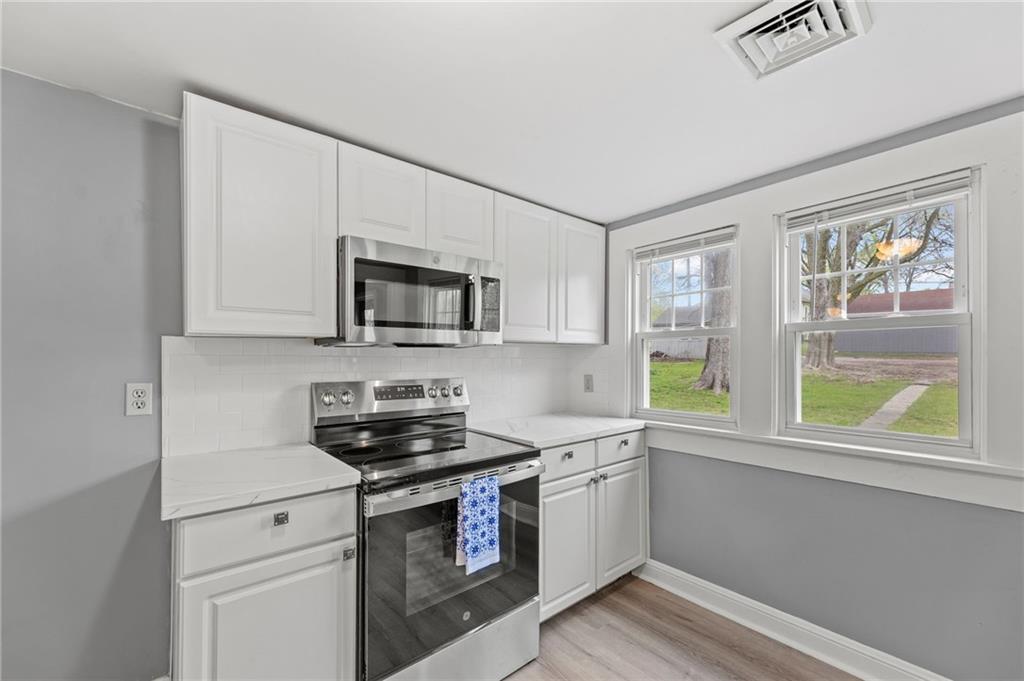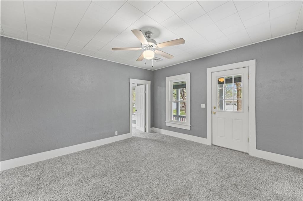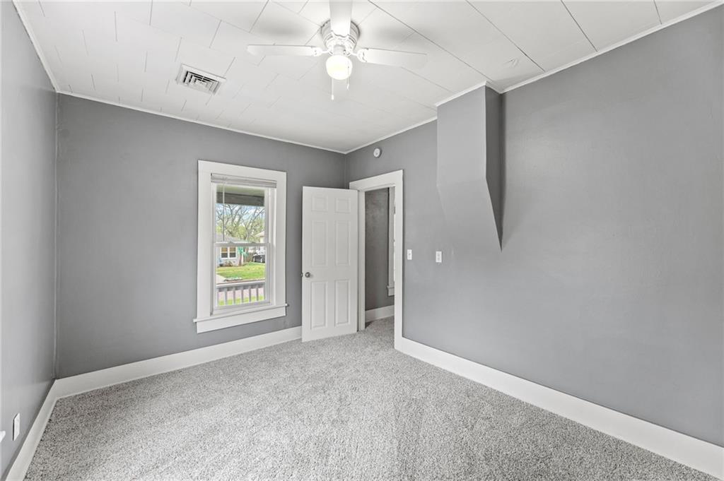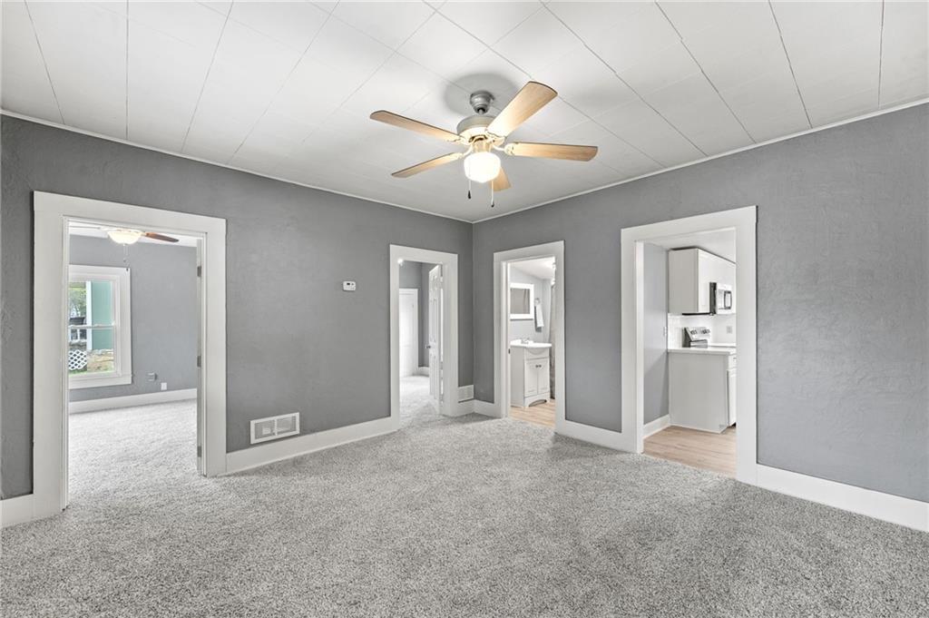 Here is a home with lots of charm! A 3 bedroom, 1 bath home that has been remodeled and brought back to life. New roof and gutters, newer tilt-in windows for easy cleaning, new paint inside and out, ceiling fans, and carpeting! The bathroom features new LVP flooring, new shower, toilet and remodeled. The kitchen has new LVP as well as new stainless steel appliances, double sink, refrigerator, electric stove, microwave and new Corian countertops. This house is move in ready. Come take a look! Did I mention the detached garage? Fresh new landscaping out front!