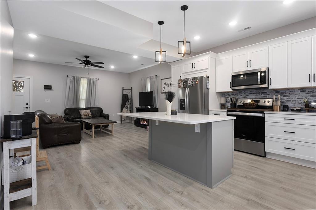 At 10 W Broadway, this isn’t an update — it’s a reinvention. Taken down to the studs and rebuilt with intention, this 3-bedroom, 2.5-bath home delivers the character of an established location with the confidence of essentially new construction. New mechanical systems. New electrical. New plumbing. New windows and doors. New cabinetry and lighting. Every major component thoughtfully rebuilt for modern living. Step inside to luxury vinyl plank flooring that flows seamlessly throughout — clean, durable, and designed for everyday life. The kitchen anchors the home with custom cabinetry, granite countertops, and a generous island that naturally becomes the gathering place for conversation, entertaining, and daily living. The main-level master suite offers both comfort and convenience, complete with a private ensuite bath and main-floor laundry — a rare combination that makes single-level living effortless. Outside, the covered front porch invites quiet mornings and relaxed evenings, while the fenced backyard offers privacy on a desirable corner lot. The one-car attached garage adds practicality and security to a home designed to simplify life. Gutted to the studs. Rebuilt with purpose. Finished with style. 10 W Broadway delivers the charm of yesterday with the reliability of today — and the peace of mind that comes with knowing everything is new.