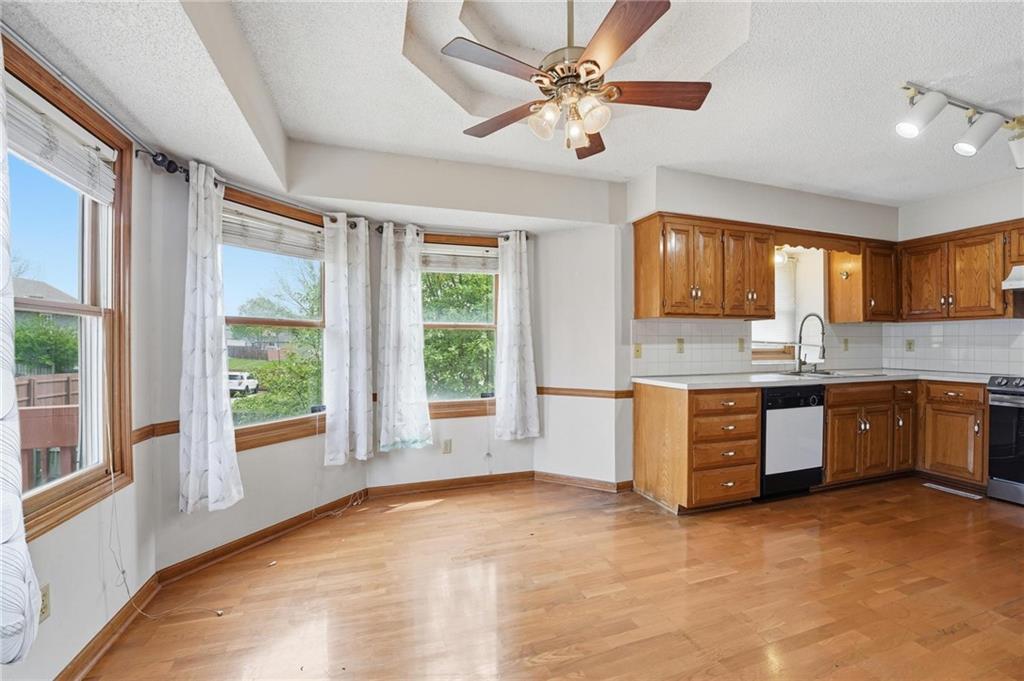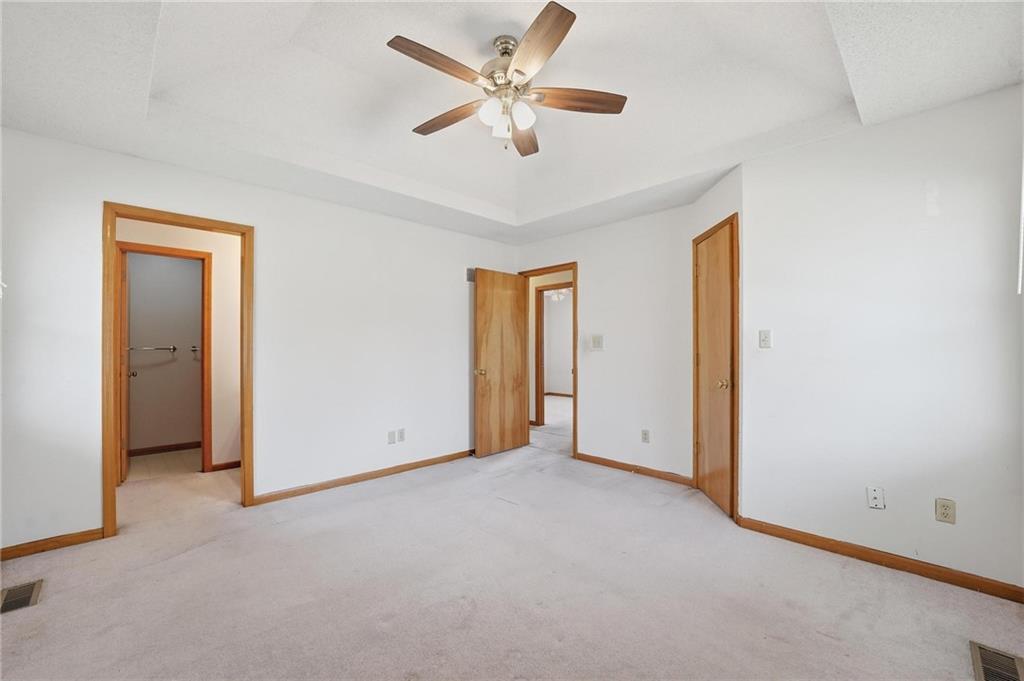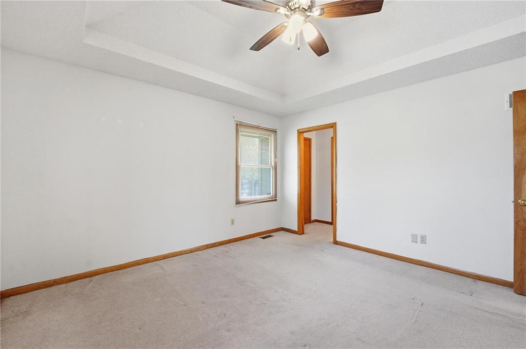 This well-maintained home offers a comfortable and functional layout with a mix of inviting living spaces and practical features. The kitchen is equipped with laminate countertops, luxury vinyl plank flooring, a pantry, and an eat-in area, creating a bright and efficient space for daily living. The main living area features carpeted flooring and a ceiling fan, providing a cozy setting to relax or entertain. The primary bedroom includes a walk-in closet, while additional bedrooms offer ample space and storage. Bathrooms are thoughtfully distributed, including a main floor full bath with a tub/shower combination and a jacuzzi feature, a private primary bath, and an additional full bath in the basement. The unfinished basement provides excellent potential for future expansion or storage and also includes the laundry area and utility space. Outside, the fenced backyard offers privacy and room to enjoy outdoor activities.