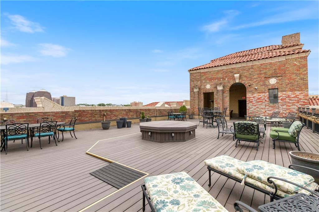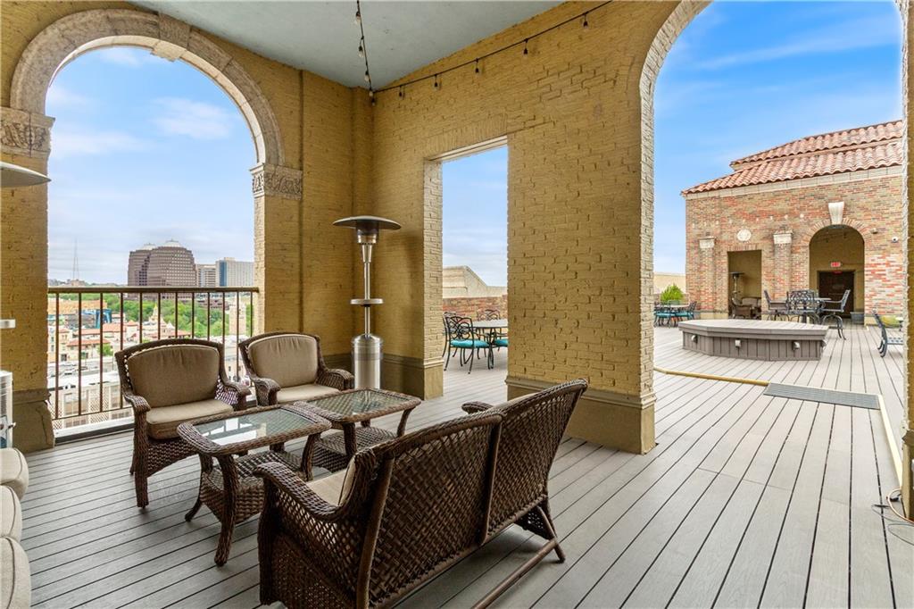 Live in the iconic Hemingway Condominiums just steps from the Country Club Plaza. This rare 2-bed, 2-bath unit offers 1,542 sq ft—one of the larger floor plans in the building. Located on the first floor for easy access, this home sits on the quiet south side and remains highly secure within a gated building with 24-hour doorman service. The spacious, light-filled layout features generous living and dining areas and a functional kitchen with ample storage. The primary suite includes an en-suite bath, great closet space, and in-unit laundry conveniently located within the master closet. The second bedroom offers flexibility for guests or a home office. Enjoy premium amenities including valet parking, secure entry, fitness facilities, garage parking, and a rooftop terrace with stunning Plaza views. A rare combination of size, location, and convenience—this is Plaza living at its best.