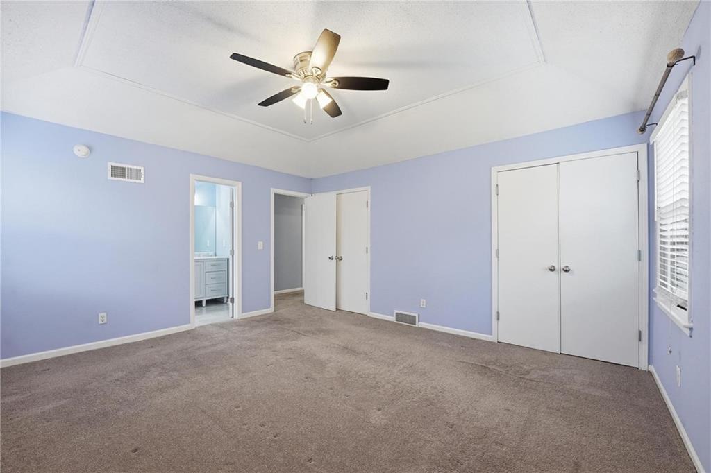 NEW ROOF, GUTTERS & WINDOW WRAPS 4/22/2026! Large home in The Coves has been updated and upgraded! 2020-new windows, exterior paint & siding repairs. Most of privacy fence was replaced. 2022 renovated primary suite bathroom. Open front door to find a large, open home. Entry has wood floor, vaulted ceiling. To the left is living room with large picture window, open to formal dining room. Wood floor from entry continues through to kitchen & breakfast room with windows offering great light & view of private backyard. Granite countertops & painted cabinets for updated look. Few steps down to fantastic family room with brick fireplace, large windows and door out to spacious stone patio & level backyard with privacy fence, firepit, mature trees. 1/2 bath and large laundry room on this level as well. Up a short flight of stairs to the bedroom level of the home. Primary suite is at the back corner of the home, for quiet privacy. This spacious bedroom offers vaulted ceiling with ceiling fan, 2 BIG closets and private bath. Bath was updated with brand new vanity w/granite top, new plumbing & light fixtures. Large shower with custom tiled walls, bench along back wall. On this level there are 3 additional bedrooms that offer great closet space. All bedrooms have ceiling fans. Hall bath has large vanity with plenty of storage and counterspace, tile floor & shower over tub. Just a partial flight of stairs down from family room to sub basement. Tremendous amount of storage on this level. Home also offers an oversized garage, room for 2 vehicles & plenty of storage space. Kitchen refrigerator, laundry washer & dryer, nest thermostat all stay! Prior owner had sewer line replaced from home to city sewer line, and new cleanout access was added. Seller replaced one of the window wells for the sub basement, improved grading around foundation.