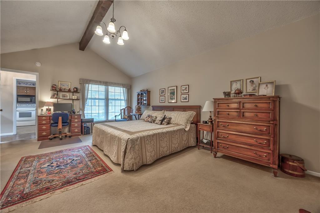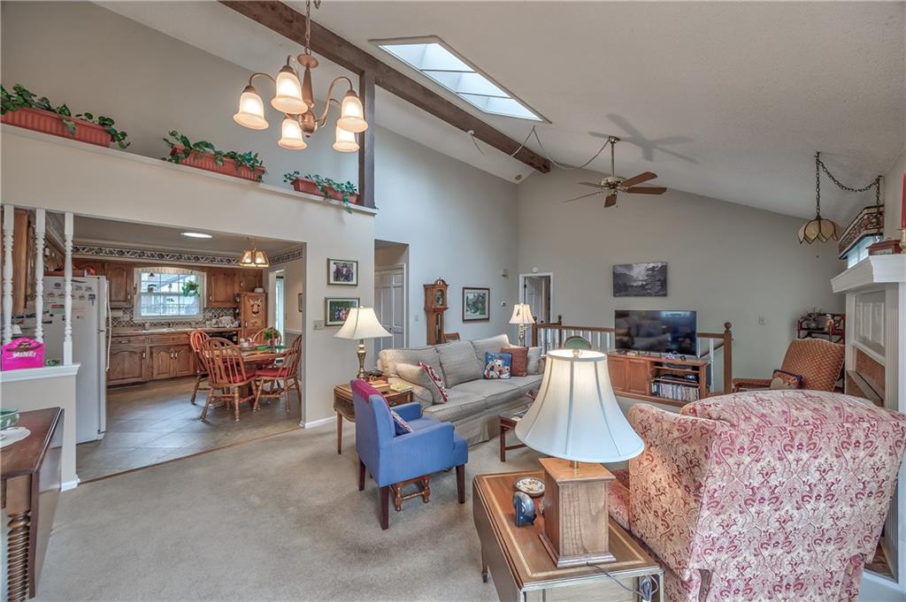 Looking for one-level living in a maintenance-provided community with a private, wooded walkout lot? This is it! Inside, the expansive kitchen features abundant cabinetry, generous counter space, and room for casual dining. The open-concept living area showcases a vaulted ceiling, elegant fireplace, and flexible layout ideal for both everyday living and entertaining. Two oversized main-level bedrooms each offer private en suite baths, providing comfort and convenience. The finished walkout lower level includes a third bedroom, full bath, spacious second living area with a gas fireplace, and a versatile bonus room perfect for a home office, craft space, or hobby room. Step outside to a private patio overlooking the wooded lot—an ideal spot to relax and enjoy the serene surroundings. Enjoy low-maintenance living in a wonderful community with a neighborhood pool and clubhouse. HOA covers trash and recycling, snow removal, gutter cleaning, exterior paint, and more. Conveniently located near highways, shopping, dining, and medical facilities.