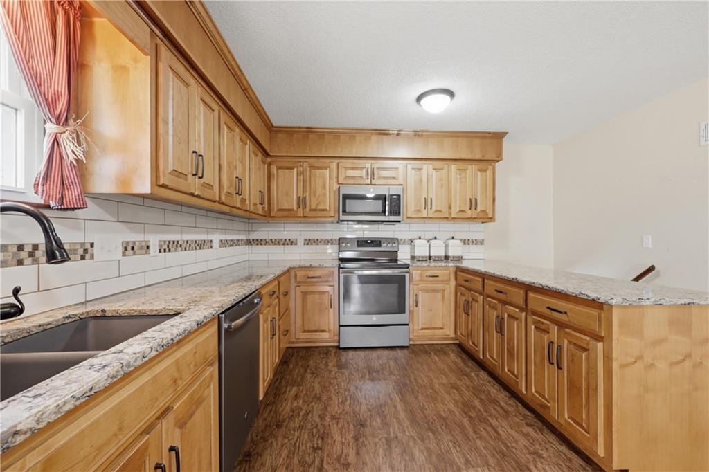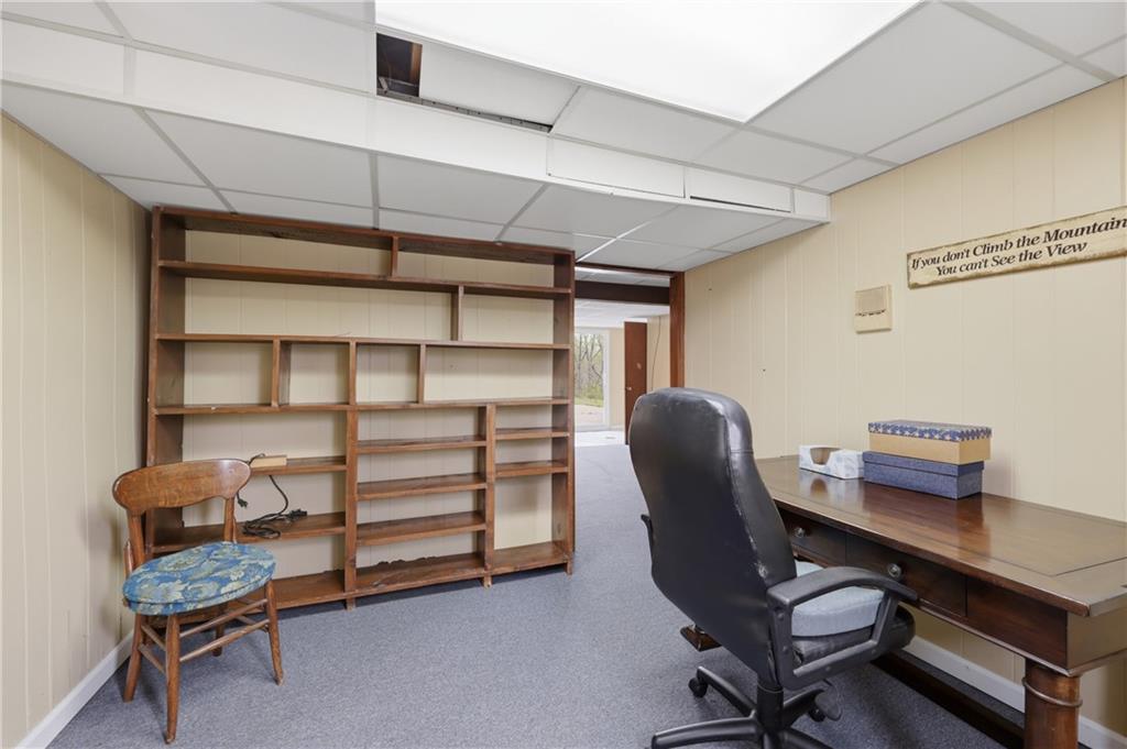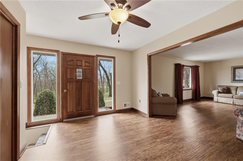 Nestled on 3.48 scenic acres, this 4 bedroom, 3 bathroom side-to-side split offers the perfect blend of privacy, space, and opportunity. Surrounded by mature trees with a peaceful pond on the property, this setting provides a quiet, country feel while still being conveniently located. Inside, you’ll find spacious living areas, a functional layout, and plenty of natural light throughout. The kitchen offers ample cabinet space and flows easily into the dining area, making it ideal for everyday living or entertaining. The finished lower level features a cozy fireplace and additional living space, perfect for a second family room, recreation area, or home office. Step outside and enjoy everything this property has to offer—from the expansive yard to the outbuilding/shop, providing plenty of room for hobbies, storage, or equipment. With nearly 3.5 acres, there’s endless potential for outdoor living, gardening, or simply enjoying the peaceful surroundings. This home is being sold AS-IS, making it a great opportunity for buyers looking to add their own personal touches and build equity in a beautiful setting. Don’t miss your chance to own acreage, a pond, and a home full of potential!