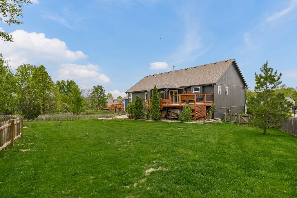 Beautifully updated home in a Cul-d-sac Lot!! HUGE kitchen with hardwood floors, Tons of cabinets, Open & Light! Vaulted Ceilings, Ceiling fans, Fireplace, Master bath w/Whirlpool, Shower, Walk-in closet, 4 Spacious bedrooms! 3 baths! The two-tier deck steps down to Stamped patio & fire pit! HUGE fenced back yard.... Fabulous out door entertainment area! Bathroom in basement has access to garage for quick clean-ups! Main level laundry! Great access to all Major roads! Close to shopping & restaurants! Walk to School - Excellent Liberty Schools! Neighborhood Pool and Walking Trails!! New exterior paint, new carpet in 2 bedrooms and downstairs. New luxury vinyl in the entry way from the garage and the upstairs hall bath. Fresh landscaping in the front adds to the curb appeal!