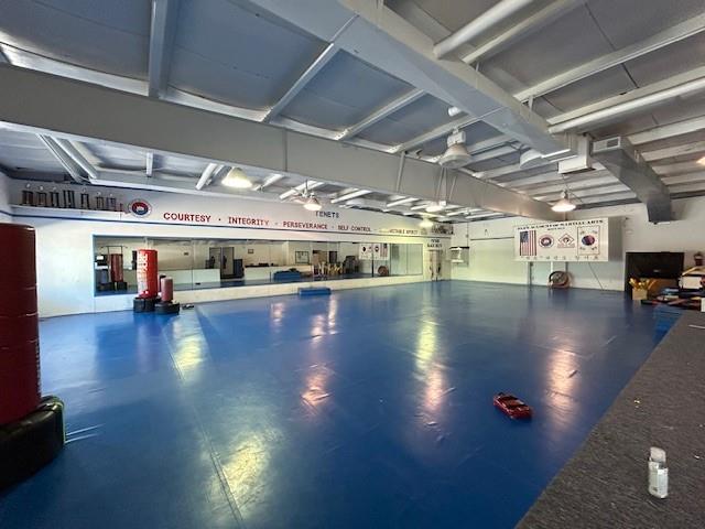 Spacious 3,698 SQFT commercial building featuring a large open training floor, multiple bathrooms, changing rooms with benches, private offices, reception area, and extensive storage. The property includes paved parking lot, and high-visibility location. Perfect for fitness, dance, sports, retail, or office use. Sold AS-IS – bring your vision! Buyer and Buyer's Agent to verify all information including square footage, taxes and HOA information.