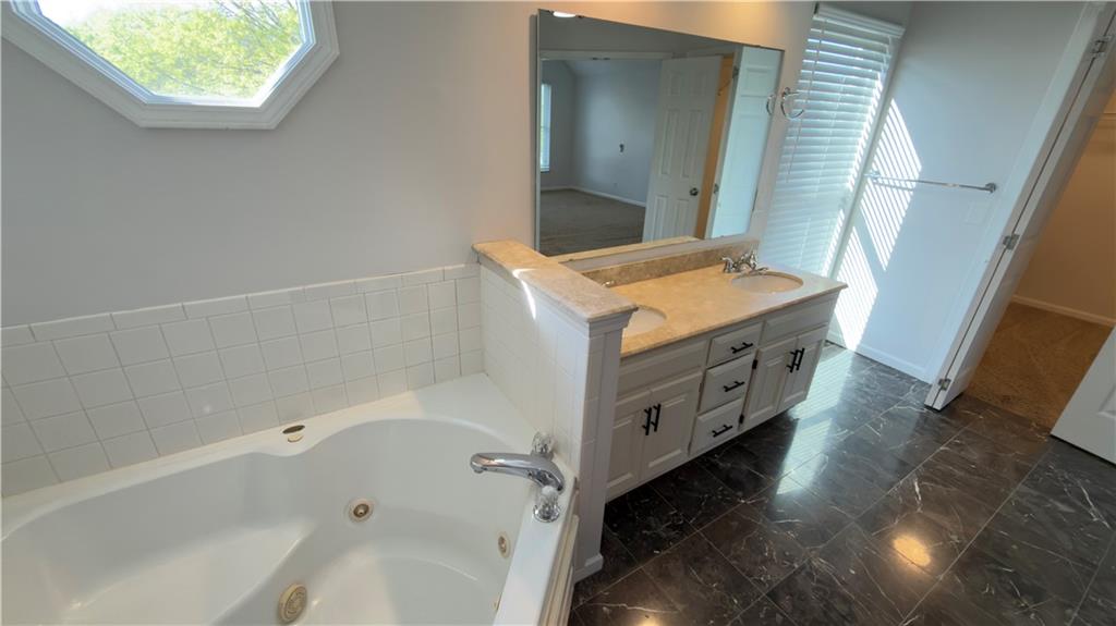 Beautifully updated 4-bedroom, 3-bath home in Olathe, KS with modern finishes and unique style throughout. Great curb appeal with black accents, a spacious driveway, two-car garage, and a good-sized lot. Inside features new ceramic flooring, carpet, fresh paint, and an updated kitchen with stylish fixtures. The spacious primary suite offers a private bath with double vanity, whirlpool tub, separate shower, and private toilet area. The finished basement adds extra living space with one bedroom, a full bath, double closet, custom bar, wine cooler, and storage. Large backyard with plenty of room to enjoy.