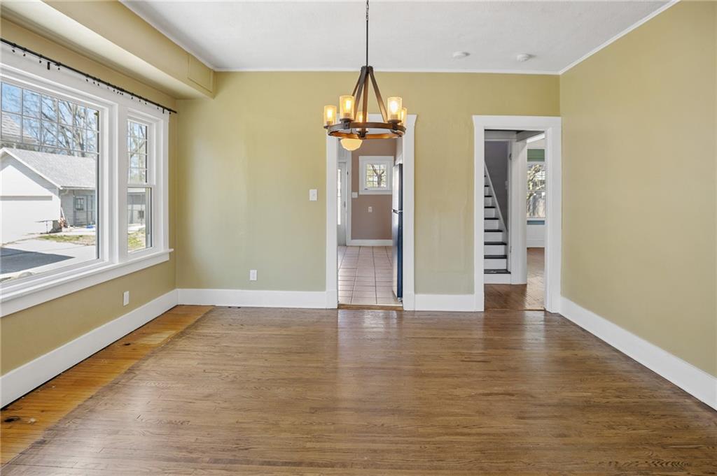 Full of charm! This 5 bedroom home on Webster will check all the boxes! As you walk into the living room, you will notice the home has a spacious feel, with its tall ceilings. There is a fireplace framed front and center, along with large windows. The formal dining room would be the perfect place to entertain guests. The kitchen has a chic look with rubbed wood cabinets, as well as a tile backsplash. On the main floor, you have two bedrooms, and a full bathroom. Upstairs leads you to three more bedrooms, as well as a second full bath, with plenty of attic storage. In the basement, this home has additional usable sqft perfect for a secondary living room or movie theater. There is also an area for washer dryer, as well as a freezer. Outside the home has some attractive features such as a front porch, garden beds, and a chicken coop! Not to mention the one-car detached garage leading up the shared driveway. Come take a look at this stunning home today!