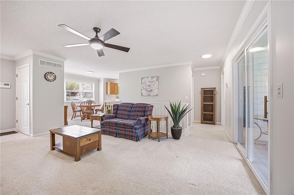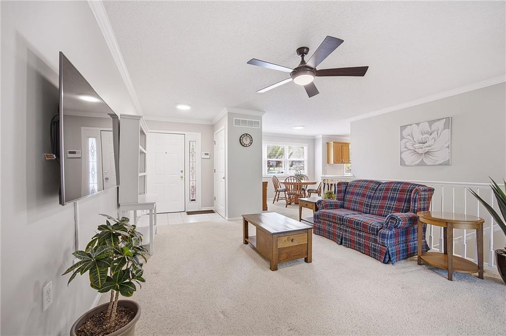 Welcome home to this beautifully maintained 2-bedroom, 2-bath ranch townhome in the highly sought-after Sterling Estates, a charming 50+ maintenance-provided community in Olathe. Opportunities in this tucked-away neighborhood are rare, and this one is truly special! Step inside to a light-filled open floor plan featuring a bright kitchen with a breakfast bar, and seamless flow into the dining and living spaces—perfect for easy everyday living and entertaining. The spacious primary suite offers double closets and a private en-suite bath, while the secondary bedroom is conveniently located near a full guest bath. Enjoy peaceful mornings or relaxing evenings on the private covered deck overlooking beautiful trees and greenspace, offering both privacy and serene wooded views. The finished basement provides incredible extra living space, with two large rooms, abundant closet storage, built-in bookshelves, and a half bath—ideal for a family room, office, hobby space, or guest area. This friendly, vibrant community offers true low-maintenance living with the HOA covering exterior maintenance, roof, siding, lawn care, and snow removal. Residents also enjoy wonderful neighborhood events including monthly luncheons, social gatherings, and annual picnics. Conveniently located close to shopping, dining, and highway access, this hidden gem offers easy living in Johnson County at an affordable price. Homes in Sterling Estates rarely come available—don’t miss your chance!