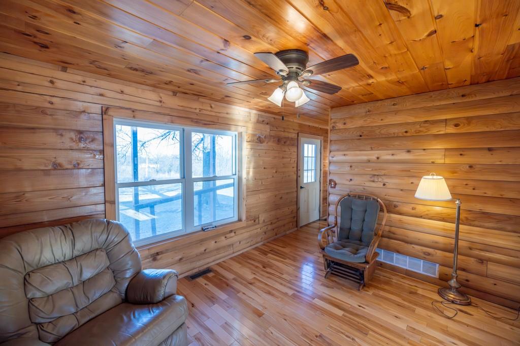 This 64 +/- acre property lies out beautifully in Sullivan County, Missouri! The land is conveniently located off T Highway and southeast of Milan. The farm offers so many options with a great mix of pasture, wooded draws, a creek, and two ponds. The biggest pond is a half-acre in size and is ready for fishing adventures. The pasture ground is gently rolling and ideal for your livestock needs. If deer and turkey hunting is up your alley, don’t overlook this one! It sets up well with several access points and long-range shooting opportunities. The secluded, hidden fields would make for perfect food plot locations, and the creek running through the southeast corner is a great place for ambushing cruising bucks. This north Missouri gem gets even better with a log cabin that overlooks the countryside. It would make for an amazing weekend getaway or permanent residence. You will absolutely fall in love with the knotty pine and cedar interior throughout. The main level features a bedroom, 1.5 bathrooms, a full kitchen, and a living room. Upstairs, there are two bedrooms and a full bathroom. The best part is the porch with incredible views overlooking the property. The sunrises and sunsets will be hard to beat! Added bonuses include a detached garage and equipment shed for additional storage needs. Opportunities at properties like this don’t pop up very often. Turn this into your very own country homestead and outdoor paradise.