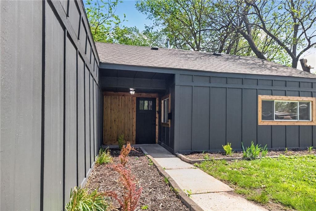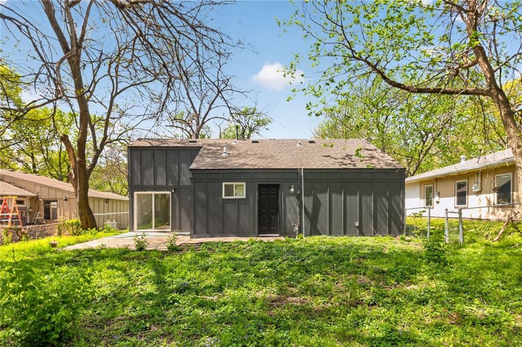 Welcome home to this beautifully completely remodeled 2-bedroom, 1-bath ranch offering convenient one-level living. This home has been taken down to the studs and rebuilt from the ground up — every single thing is brand new: new roof, new electrical, new plumbing, new studs, new siding, new insulation, new HVAC equipment, new granite countertops, and more. Step inside to an open-concept layout featuring luxury vinyl plank flooring and a bright, modern design throughout. The updated kitchen showcases quartz countertops, a large island with extended seating, and a functional layout ideal for everyday living and entertaining. The dining area flows seamlessly to a sliding glass door leading to a spacious patio, and a fully fenced backyard with mature trees—perfect for outdoor enjoyment. This low-maintenance home has been thoughtfully updated with contemporary finishes, fully permitted and inspected by the City of Mission, with all plans and inspections provided. It is move-in ready. Schedule your showing today