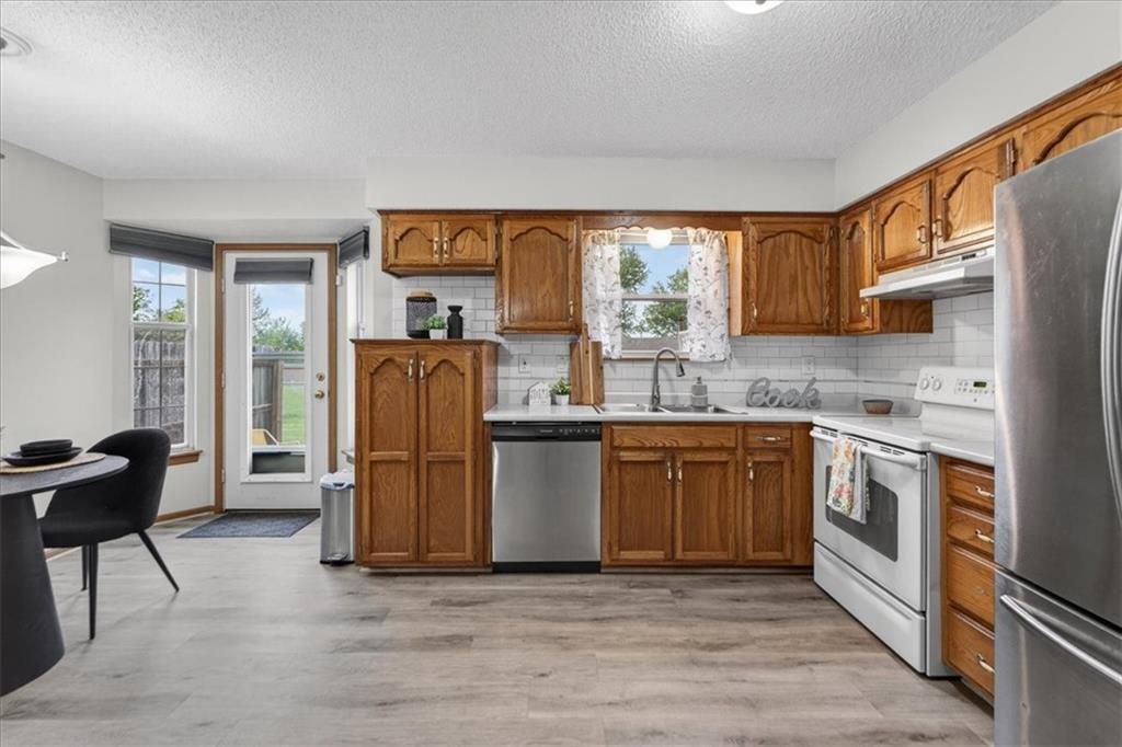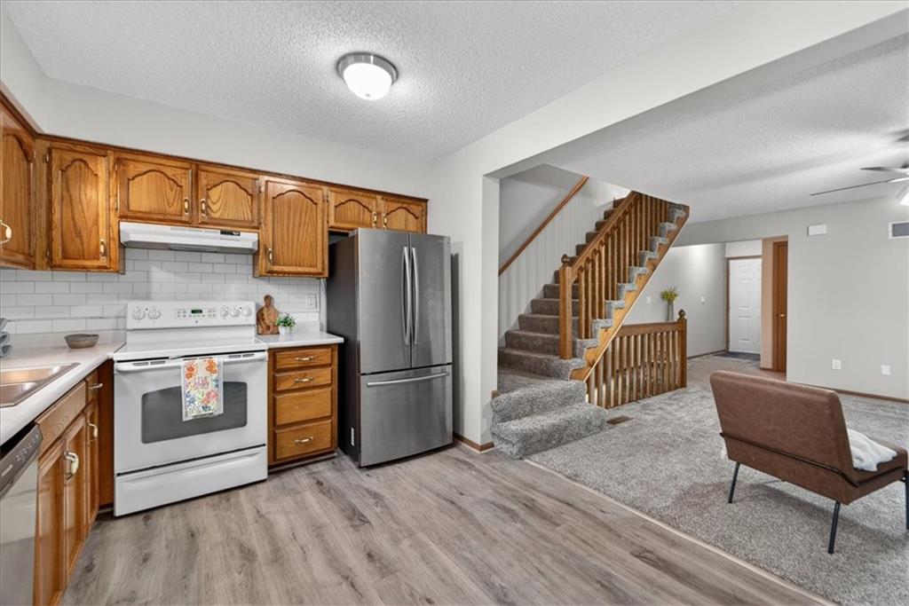 Welcome to 508 NE Knox St, Unit C -- a meticulously maintained, one-owner condo occupied since 1991 and never been smoked in or housed pets. Bright and move-in ready, this 2-bedroom, 2-bath home offers rare extras for the community, most notably a full unfinished basement providing abundant storage or future finished living space, plus attic access for additional storage. The home is all-electric, including a heat pump with central AC. Some upgrades include double-pane thermal-seal vinyl windows (upgraded 2000), and a single-car garage with storage closet and a garage door opener replaced in Fall 2024. The exterior was refreshed in March 2025 with front and back paint and a rebuilt/upgraded patio fence. Interior highlights include updated luxury vinyl plank flooring on the main level, entry, kitchen and bathroom, carpet about 1½ years old on the living area, stairs and upstairs landing, and upgraded lighting and a ceiling fan in the living room. The kitchen got new countertops and a backsplash in 2025, and features a pantry with pull-out drawers, insulated pleated shades on the dining/kitchen windows, and stainless steel refrigerator and dishwasher. The spacious master suite on the second floor includes a large closet and a convenient walkthrough from the master to the bathroom into the laundry/tub area and into the second bedroom, offering an efficient, flexible flow. Ideally located in Blue Springs with close proximity to shopping, dining, parks and major roadways, this well-cared-for unit combines practical upgrades and thoughtful ownership, an opportunity not commonly available.