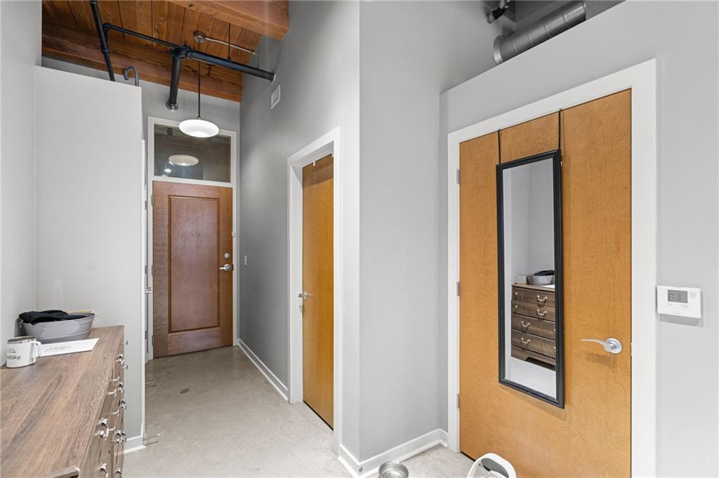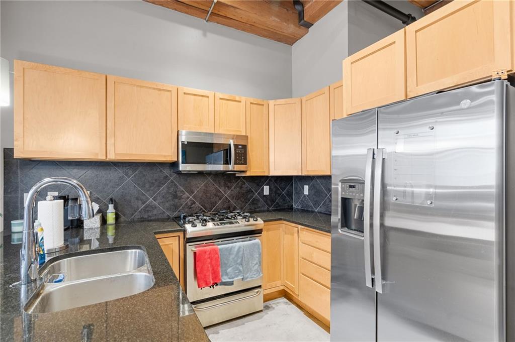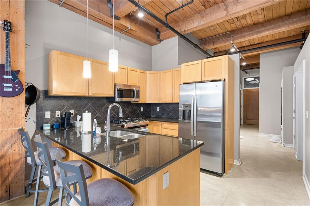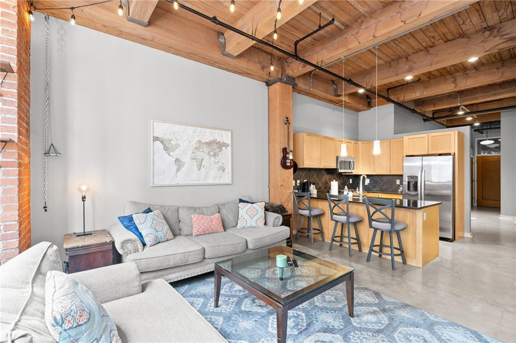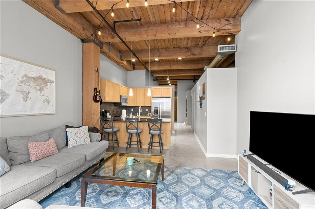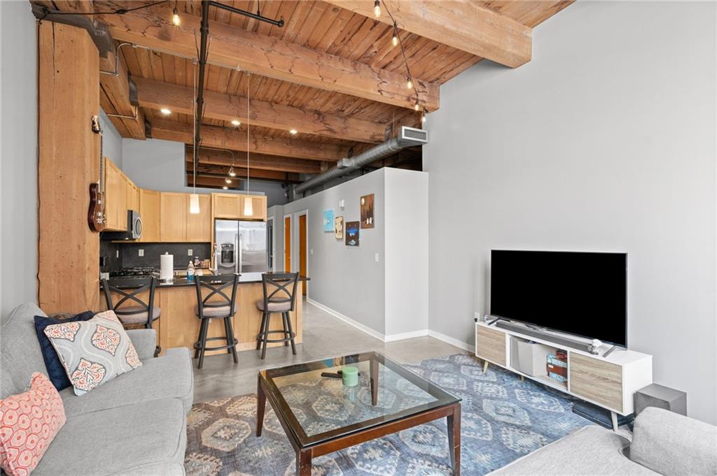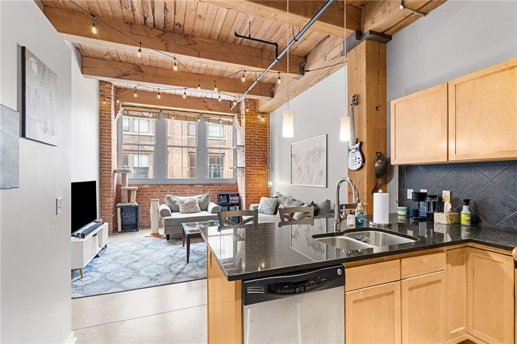 Own a piece of Kansas City’s historic Garment District without stretching your budget. This 1-bedroom, 1-bath loft at Fountains on Broadway delivers the character buyers love with a price point that makes downtown living truly attainable. Exposed brick, warm timber ceilings, and polished concrete floors create an authentic loft feel, while oversized west-facing windows bring in natural light and offer views toward the Missouri River—an added bonus not often found at this price point. The open layout flows easily between kitchen, dining, and living areas, making the space feel larger, brighter, and perfect for everyday living, working from home, or hosting friends before a night out. The kitchen features black granite countertops, stainless appliances including a gas stove (yes chefs!), and generous cabinetry with bar seating that keeps everything connected and functional. The bedroom provides a comfortable retreat while maintaining the industrial style that defines true loft living. In-unit laundry and included appliances make this home move-in ready from day one. Life at Fountains on Broadway extends beyond your front door with secure access, two elevators, fitness center, theater room, clubhouse, and private storage. Step outside and you’re in the center of it all—just blocks from the streetcar, River Market, local coffee shops, restaurants, and downtown nightlife, with quick highway access when you need it. Whether you’re buying your first place, simplifying your lifestyle, or looking for a low-maintenance city home, this is a smart opportunity to get into one of downtown KC’s most established loft communities. Opportunities at this price point in the Garment District are becoming increasingly limited.