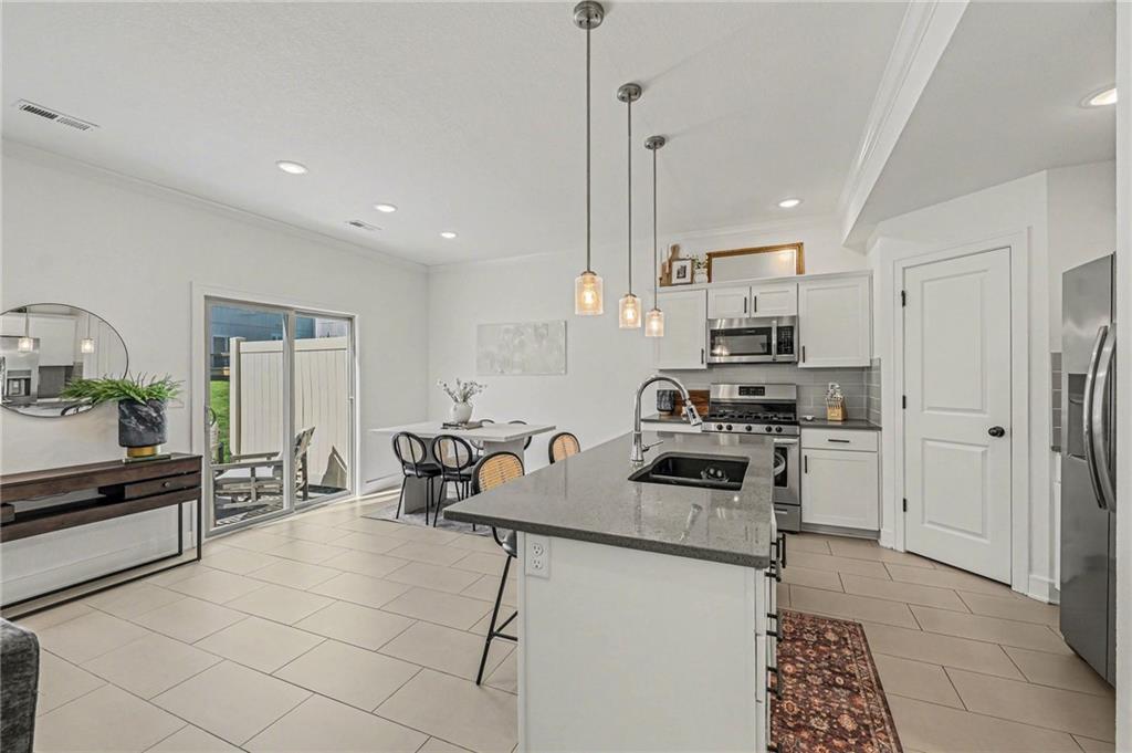 Low-maintenance living in the heart of Parkville. This meticulously kept home offers 3-bedroom and 2.5 bathrooms. Step inside to discover a bright and airy open floor plan, perfect for entertaining. Serene primary suite with custom geometric wall detailing, a large walk-in closet, and a private en-suite bath with dual vanities and elevated finishes and quartz countertops.The sleek kitchen features stainless steel appliances, tile floors, ample counter space, and a stylish island. The spacious living and dining area flows seamlessly to your back patio.