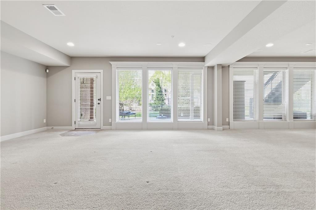 Welcome to this stunning custom-built home in the highly sought-after Mills Farm community, offering nearly 5,000 square feet of thoughtfully designed, freshly painted living space. This impressive 1.5-story home features 5 spacious bedrooms and 6 full bathrooms, blending timeless elegance with modern comfort. Inside, you’ll find an open and inviting floor plan with a seamless flow between the formal dining area, gourmet kitchen with double ovens, and expansive living room—perfect for both everyday living and entertaining. The kitchen is the heart of the home and a true centerpiece, complete with large island, abundant cabinetry, and a functional layout designed for gatherings. The main-level primary suite offers a private retreat with a spa-like bath and generous walk-in closet. Additional main floor highlights include a dedicated office, enclosed porch with trex decking, optional screens, outdoor fireplace, and convenient access to outdoor living. Upstairs, spacious secondary bedrooms provide comfort and privacy, complete with rec room while the finished walkout basement is an entertainer’s dream—featuring a an exercise space, and additional living area with large wet bar ideal for hosting or relaxing. Located in the award-winning Blue Valley School District, this community is luxury living at its finest feturing a club House with Exercise Room, Party Room, Play Area, Swimming Pool & tennis Courts. Don’t miss the opportunity to make it yours!