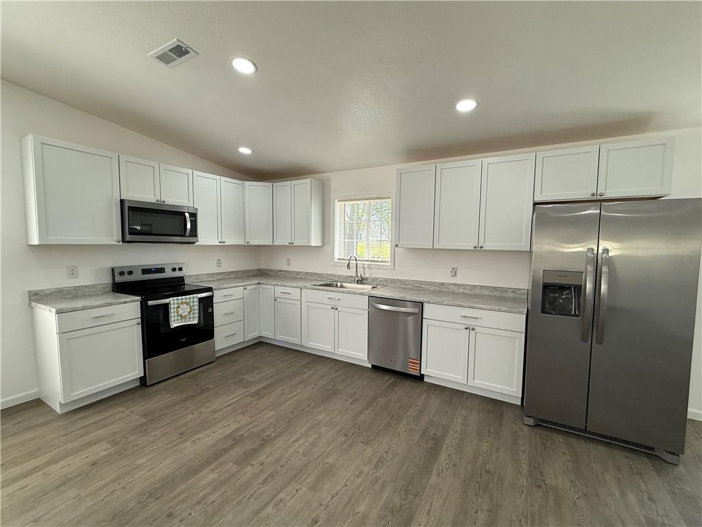 Brand new construction in the quiet Northwest Missouri town of Coffey! This thoughtfully built 1,500 sq ft home offers 3 bedrooms, including a spacious primary suite with a walk-in closet and private bath. Two additional generously sized bedrooms and a full hall bath provide comfortable space for family or guests. Step inside to a bright, open-concept living area with vaulted ceilings, recessed lighting, and beautiful wood plank flooring that creates a warm, inviting feel. The kitchen and living spaces flow seamlessly, making it ideal for both everyday living and entertaining. Built with longevity and efficiency in mind, the seller constructed this home as if it were his own—featuring 6-inch exterior walls and upgraded insulation for exceptional energy savings. A durable metal roof and low-maintenance slab foundation add to the home’s practicality and peace of mind. With brand new appliances, timeless finishes, and a manageable 0.20-acre lot, this home offers the perfect blend of comfort, quality, and efficiency—all in a small-town setting.