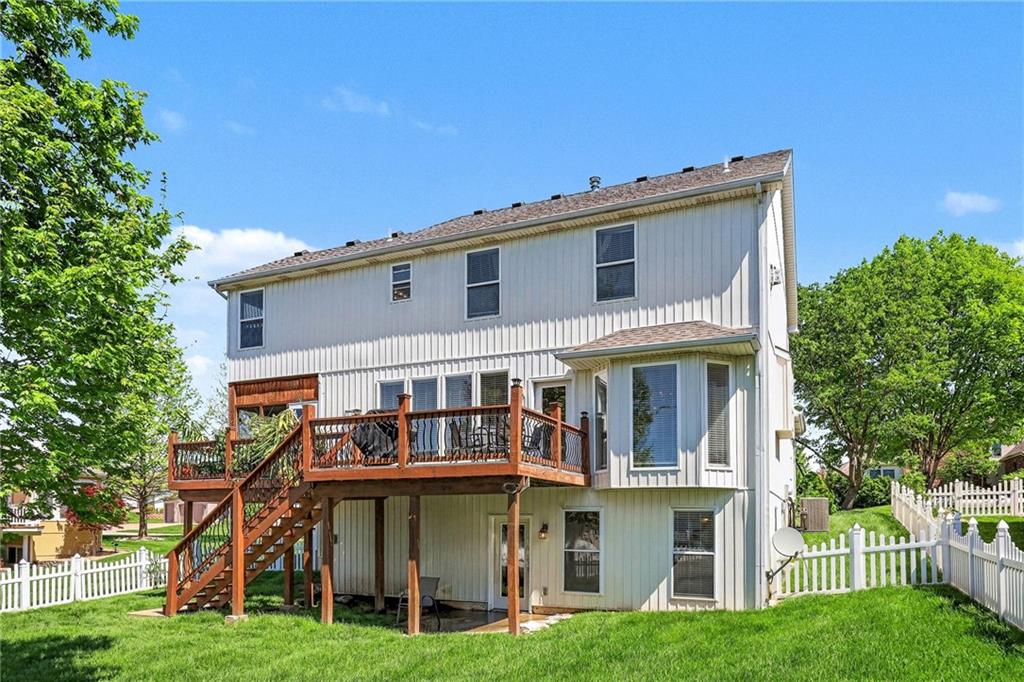 Located in the sought-after Four Pillars subdivision, this spacious 4-bedroom, 3.5-bathroom home offers a perfect blend of comfort, functionality, and style in the heart of Blue Springs. With generous square footage designed for both everyday living and entertaining, this home provides multiple living areas and thoughtful upgrades throughout. The main level features an open and inviting layout with soft neutral finishes and abundant natural light. The seamless transition between the kitchen and living room creates a cohesive and welcoming environment. Upstairs, you’ll find spacious secondary bedrooms and a standout primary suite complete with a fireplace, decorative ceiling detail, whirlpool tub, walk-in closet, and a true retreat-like atmosphere. The finished lower level adds versatility with an additional bedroom, full bathroom, and a large recreational space ideal for entertaining, a media room, or flexible living needs. Enjoy outdoor living on the expansive deck overlooking the backyard—perfect for gatherings and relaxation. The home is situated in a walkable community with access to nearby trails and is conveniently located near shopping, dining, highways, and top amenities in the Kansas City metro area. A well-rounded home offering space, comfort, and long-term value. Please include an In Its Present Condition Addendum with all offers as the seller will not make any repairs and/or resolutions.