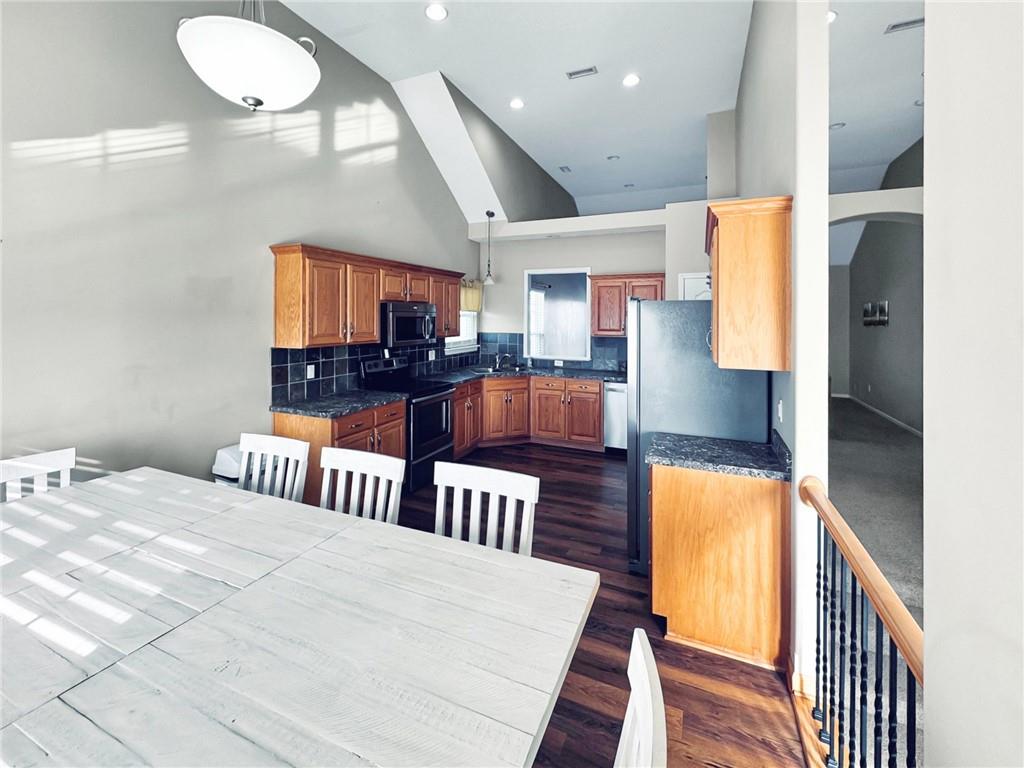 Spacious and versatile, this 6-bedroom, 4 full bath home offers room for everyone and then some. The main level features 3 bedrooms and 2 full baths, highlighted by high vaulted ceilings that create an open feel. Enjoy the convenience of main floor laundry and comfortable everyday living. The ground level includes 2 additional bedrooms, a full bath, and a large second living room—perfect for guests and entertaining. Downstairs, the walk-out basement offers even more flexibility with a private bedroom and full bath. With two large living areas, a functional layout, and a fenced-in backyard ready for pets or gatherings, this home checks all the boxes for space, comfort, and convenience.