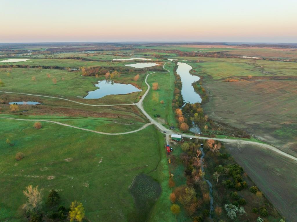 Large, contiguous land holdings near major metropolitan areas are increasingly rare. The Bettels Ranch is one of the most significant recreational and investment opportunities to come to market near Kansas City in recent years, defined by its scale, exceptional water resources, and diverse wildlife habitat. Spanning 2,425 acres, the ranch is located just 45 minutes south of Overland Park and seven miles from U.S. Highway 69, with paved access via two state highways. With access from four sides and an extensive internal road and trail system, the property offers excellent accessibility while maintaining privacy and seclusion. The ranch features an impressive water footprint, including nine deep strip pit lakes totaling approximately 129 surface acres, along with sixteen additional lakes and ponds adding another 116 acres. These waters provide outstanding trophy bass and crappie fishing and enhance the property's beauty. Located within a strong wildlife corridor, the ranch supports abundant populations of whitetail deer, turkey, and waterfowl. Its proximity to La Cygne Reservoir, the Marais des Cygnes River, and the Marais des Cygnes Waterfowl Area further enhances its recreational appeal. Waterfowl hunting is a standout feature, with consistent duck populations supported by diverse habitat including timber, marsh, and creek corridors. A hunting lease through 2028 provides income of $62,500 annually in 2026 with scheduled increases, while allowing owner hunting rights. The ranch also supports a productive agricultural operation, with approximately 1,850 acres in 23 pastures supporting an estimated 800 head of cattle. The seller would consider leasing back grazing acreage. Additionally, 150 acres of tillable ground, partially irrigated, generates $25,000 annually, with additional farm and pasture lease income. Improvements include a 55’x100’ Quonset building and a 30’x40’ metal building. Additional features include a manure agreement enhancing soil productivity.