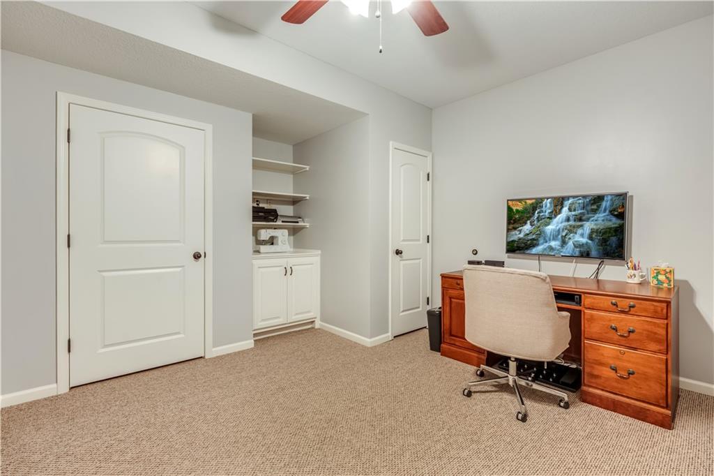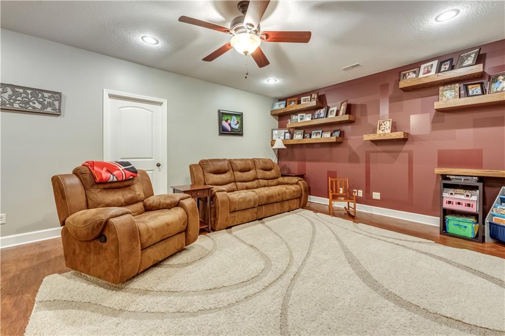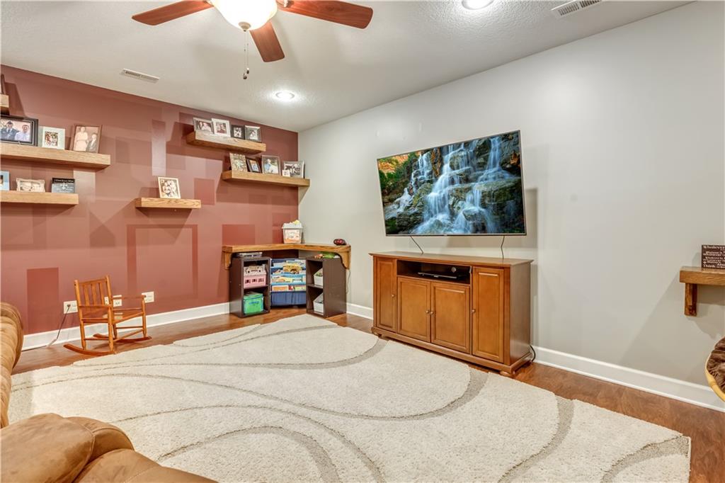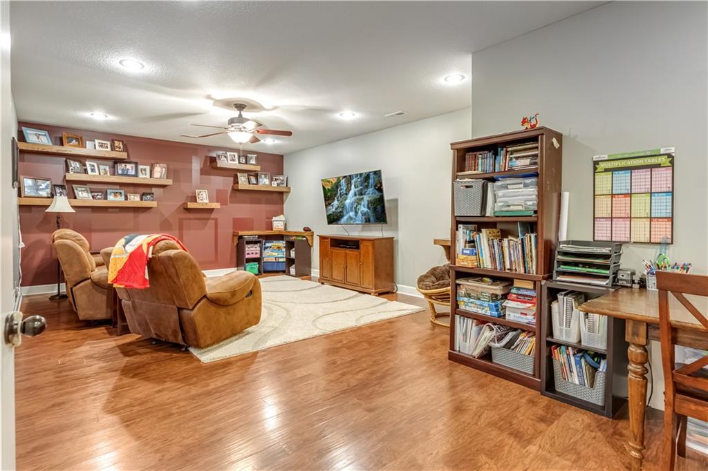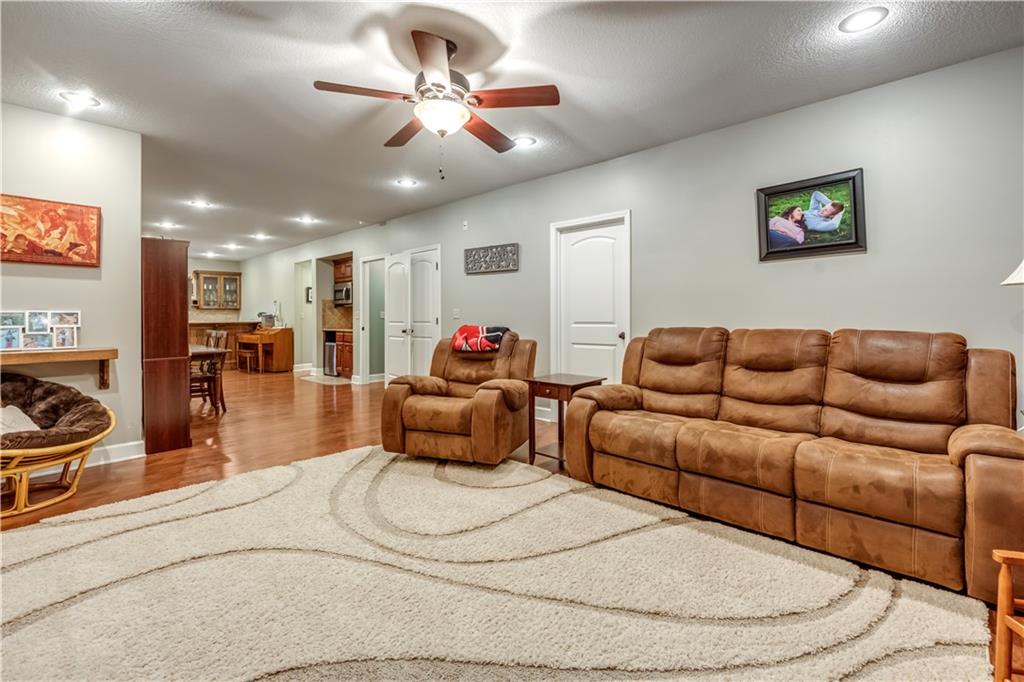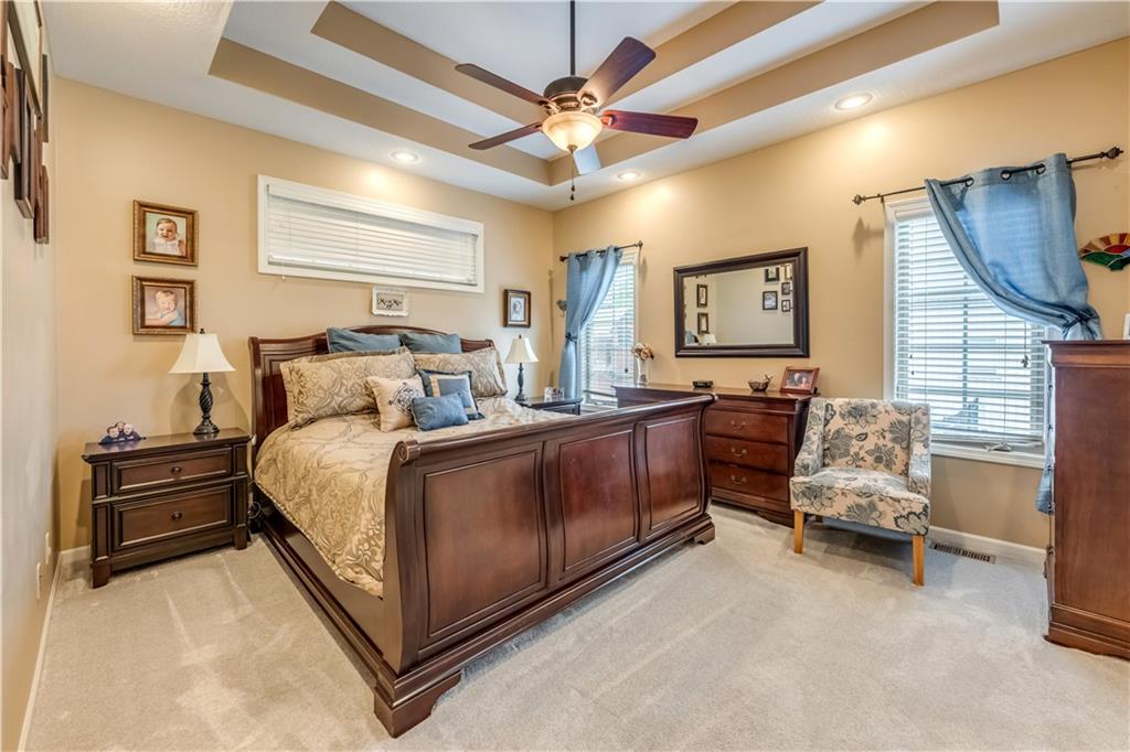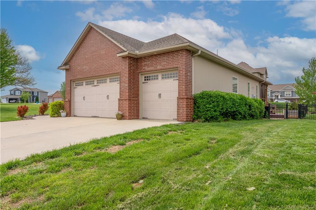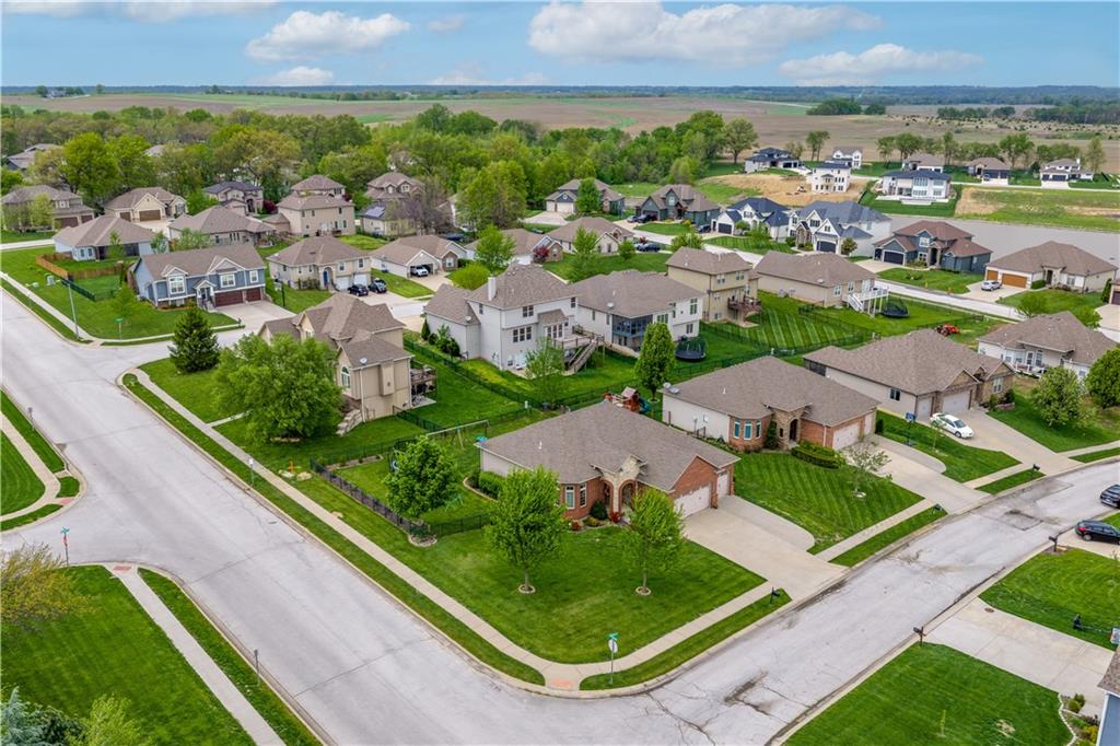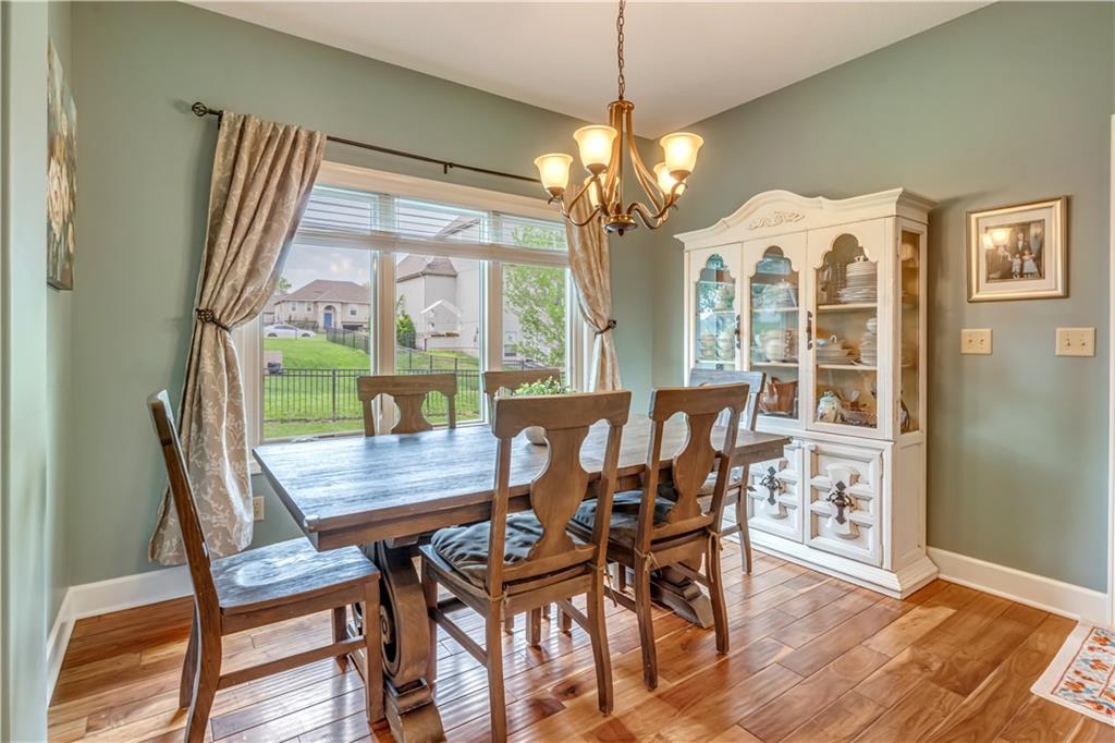 Your beautiful home is ready for you in the desirable Cayhill subdivision, known for holiday events, walkability, and commuting convenience to Whiteman AFB! This immaculate reverse ranch sits on a large corner lot with subdivision lake privileges, just minutes to shopping and restaurants in town. The welcoming front porch ushers you into warm hardwood hand-scraped floors and an open concept great room with tall ceilings. Enjoy the warmth of the gas fireplace with stone surround and still have connection to the Kitchen/Dining Room activities. Sellers have increased energy efficiency with window replacement in LR, DR, back secondary Bedroom, and hall Bathroom June 2025. Your large Kitchen has an abundance of custom wood cabinetry, granite counters, stainless steel appliances that all stay (Fridge, double oven, and dishwasher less than a year old!) and a dedicated pantry directly off the Kitchen. Main floor laundry is also nearby. The generous Primary Bedroom showcases a walk-in closet, newer carpet, and a beautifully updated on-suite Bathroom with new floor tile, newly tiled shower, new glass door, double vanity, and jetted tub. The two secondary Bedrooms have larger closets with storage systems and newer carpet with the hall Bathroom between. The lower level includes a full bar (drink fridge will stay) and service area off of the spacious Family Room, the 4th true Bedroom with a walk-in closet, another nonconforming room for many uses, and a 3rd full Bathroom. The 300 SF storage area includes a utility sink, storm shelter, NEW AC and furnace in 2025! Head out the patio door upstairs to the screened-in deck for relaxation without bugs! The basement patio leads up to the wide, newly stained back deck with a dedicated gas line for a firepit or grill. Play options abound with a swing-set and more in the fenced yard with in-ground sprinkler system. Come make new memories here!
