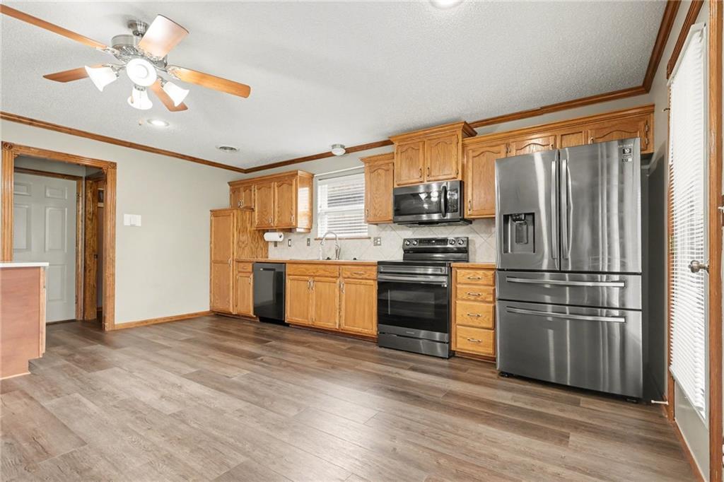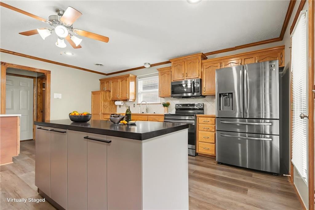 Beautiful ranch home that shows like new! This 3-bedroom, 2-bath property features an open-concept layout perfect for modern living. The spacious kitchen includes a pantry, ample counter space, and all appliances stay. Both bathrooms have been tastefully updated. Enjoy peace of mind with newer carpet, luxury vinyl plank flooring, fresh paint, and an updated HVAC system. Wood blinds are featured throughout the home, adding warmth and style. Step outside to a private backyard with a patio and pergola—perfect for relaxing or entertaining—plus a fully fenced yard for added privacy.