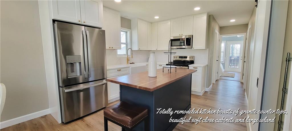 Beautifully remodeled 3 bdrm 2 bath home with 2 car garage in the popular TRUMAN LAKE COMMUNITY OF STERETT CREEK VILLAGE! The new composite front porch leads the spacious vaulted living room & dining area with new flooring & paint throughout. Gorgeous remodeled kitchen boasts of new cabinets, granite countertops, new stainless appliances, farm sink, island & pantry with barndoor. Large main floor bedroom/family room has access to the beautiful new composite back deck. Second main floor bedroom &remodeled bath with walk-in shower. New custom hand rail goes to the upper level 3rd bedroom with lots of custom storage & full bath. A quaint courtyard leads to the oversized 2 car garage. Owners have done many other upgrades to include, roof, HVAC system, interior doors, all in one washer/dryer, lighting & hot water heater. Neighborhood amenities include, pool, pickleball & basketball court & shelter house for community events. Jump on your golf cart and go down to MARINA for a boat ride or enjoy the music & great food! Fish year around on gorgeous TRUMAN LAKE. HURRY! THE LAKE LIFE IS WAITING FOR YOU!!