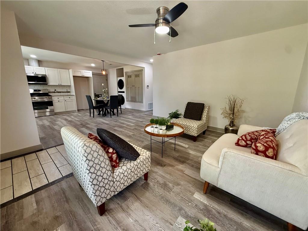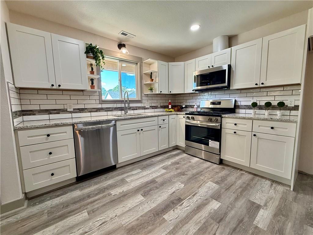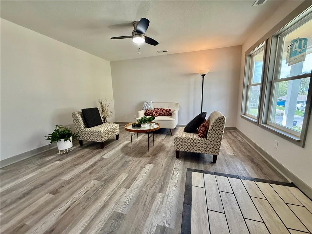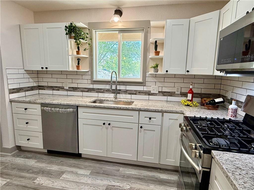 New from top to bottom, ready for a new owner. This 3 bedroom, 2 Bath Home offers many new features from the Roof & Gutters, Doors and Windows, New Siding & New Paint inside & out. New flooring, New Kitchen with Granite Counters & Dove Tail Cabinets with a Granite Countertop & Tiled Backsplash. New Dishwasher, Gas Range, Microwave and Washer & Dryer. Two newly remodeled Bathrooms and Three updated Bedrooms. All New Lighting & Paddle Fans. Plus a New HVAC System. Seller is a Licensed Real Estate Agent in the State of Kansas.