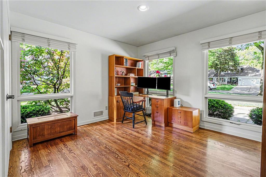 Welcome home to this Prairie Village midcentury ranch home, available on the market for the first time in its history. One family loving designed and built the home in 1964 and has enjoyed decades in this oasis nestled into the heart of PV ever since. A covered front stoop and formal entryway welcome you with design nods to midcentury roots. Enter to the stunning living room with warm wood detail and statement, one-of-a-kind walk around fireplace. Oversized windows welcome in natural light. Easy flow into the dining room finds more light and bright space with a wall of floor to ceiling windows. Exposed brick fireplace offers texture and visual interest. Kitchen is meticulous with updated appliances, double ovens, plenty of cabinet and counter space for prep and entertaining and a breakfast nook you won’t want to leave with beautiful views of the backyard. Gleaming hardwoods throughout and peaceful views from every room. 3 bedrooms on the main level that include a primary bedroom with an ensuite bath. Don’t miss the bedroom windows that make simple bedrooms feel intentional and inviting. Large hall bathroom. Basement is the full footprint of the home and finished with rec room, music and workout space with built-ins, craft/hobby area plus generous storage area and workshop. Thoughtful and intentional design continues in the backyard. A natural landscape fence offers privacy while keeping nature and serenity at the forefront. Hardscaped paths invite you to slow down and enjoy the surroundings. Front circle driveway leads to a two car garage tucked into lush greenery. The combination of unique design, the weaving of nature with the home’s interior and the opportunity to call the heart of Prairie Village home awaits you here. This home offers a special opportunity for a lifestyle that doesn’t come around everyday. Don’t wait to make this one yours. **OFFER DEADLINE of 4/26 at 1pm**