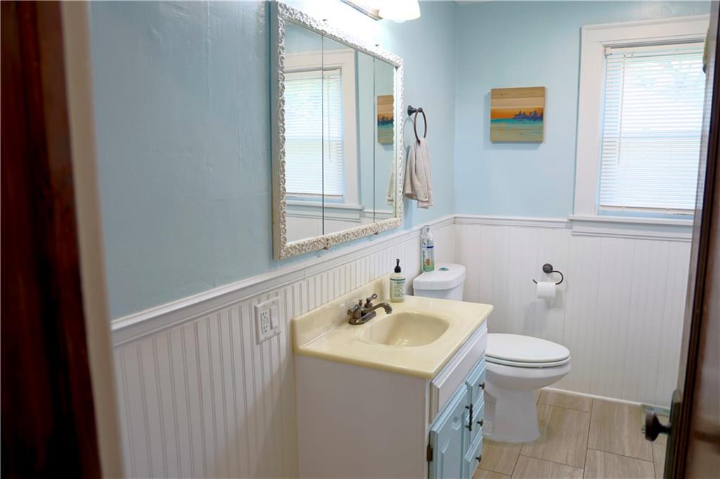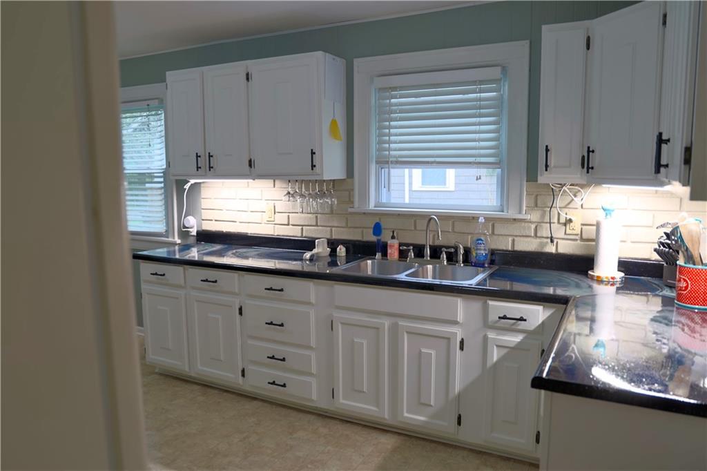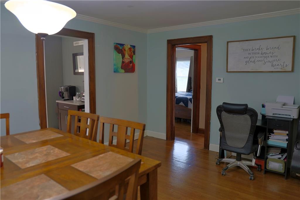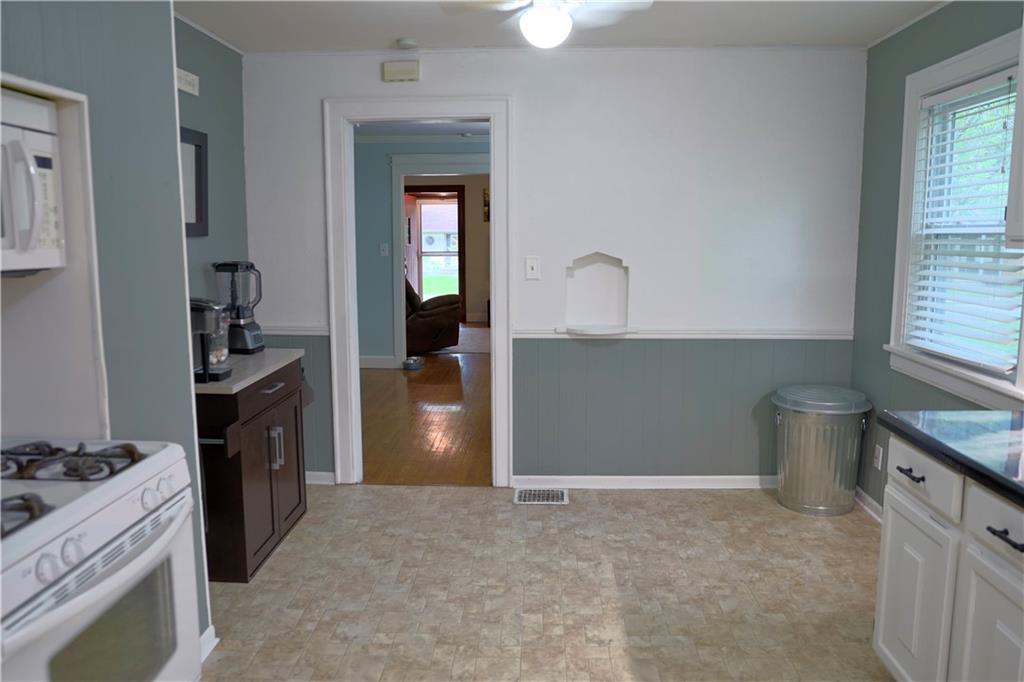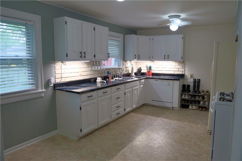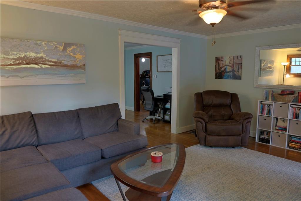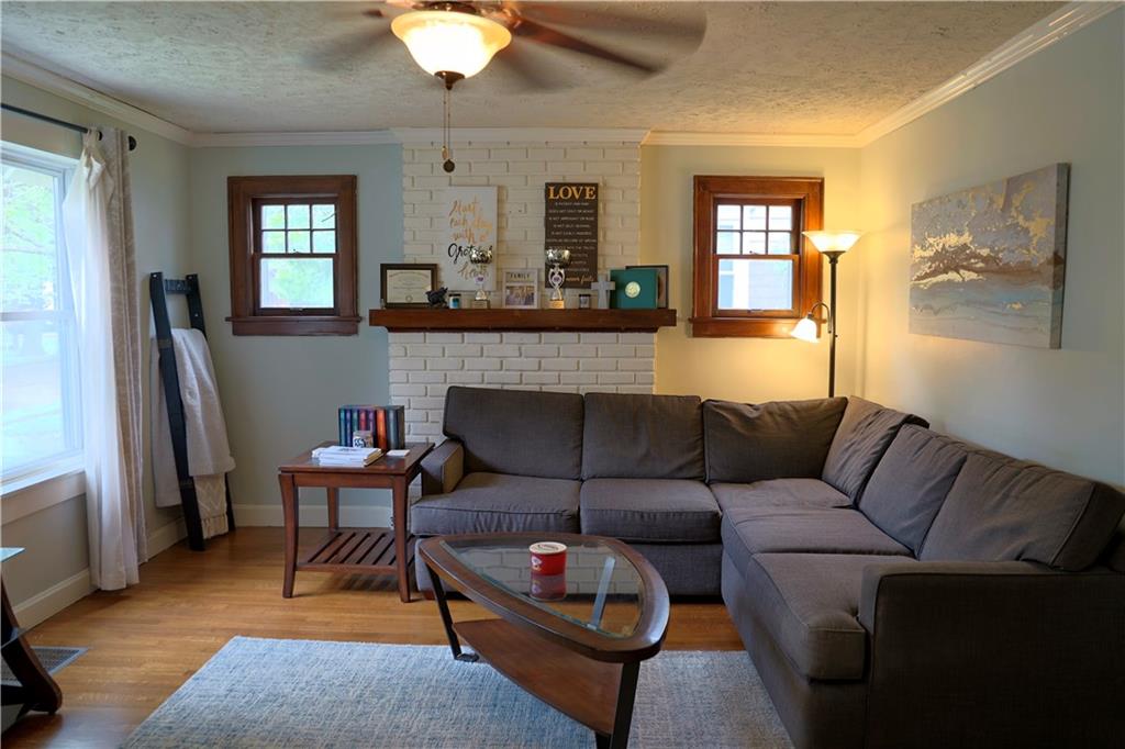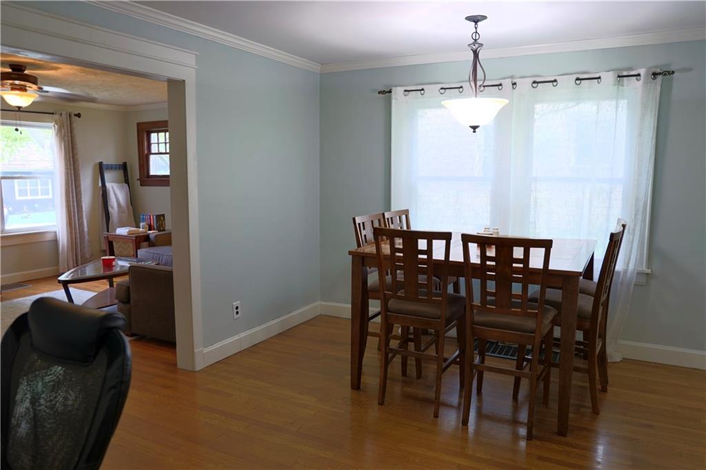 Welcome home to this inviting ranch, ideally located on corner lot in highly desirable neighborhood filled with historic charm. Walking distance to City Park, schools and up and coming Harrisonville Square. Hardwood floors in Living area w/ fireplace flanked by charming original pane windows and adjoining dining room. Kitchen w/ gas range & microwave & dishwasher. Two spacious bedrooms & nicely updated hall bath. Full basement w/ 2nd full bath. Fenced yard with covered patio. Two car garage.