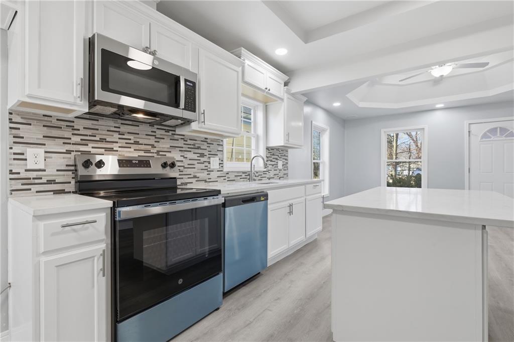 Discover this impeccably remodeled Kansas City home that feels like new construction with the charm of an established neighborhood. Rebuilt from the frame up, nearly everything has been updated with quality craftsmanship and careful attention to detail. Step through the front entrance into a bright, open-concept layout that seamlessly connects the living area, spacious dining room, and an expansive kitchen designed to impress. The three generously sized bedrooms offer comfort and flexibility for family, guests, or a home office. The stunning new kitchen and beautifully renovated bathrooms shine with ceramic tile, modern finishes, and thoughtful design throughout. Every detail reflects the pride and care poured into this renovation. Outside, you'll find a spacious rear garage, fresh landscaping, new sod, and newly poured concrete features that add both beauty and functionality. This is one you truly need to see in person to appreciate all it has to offer.