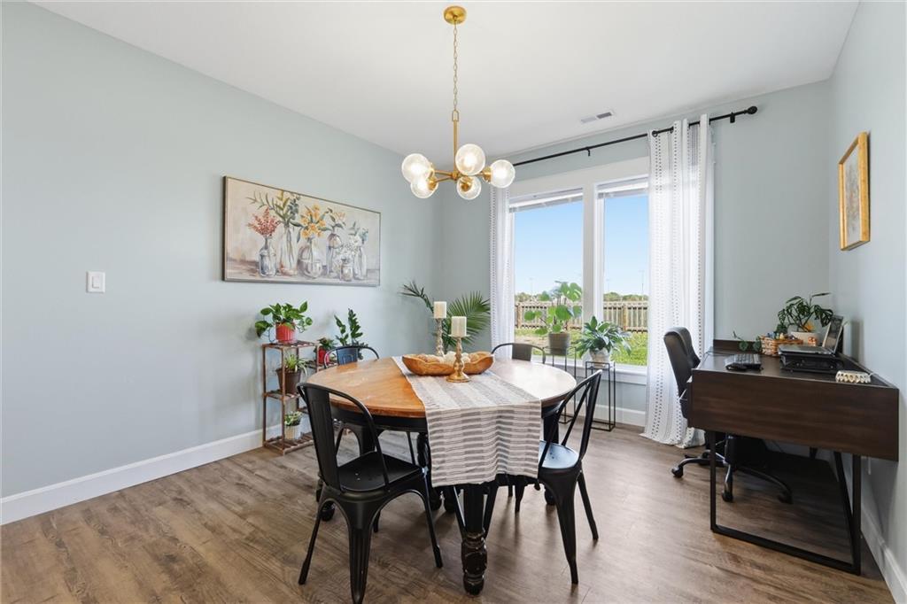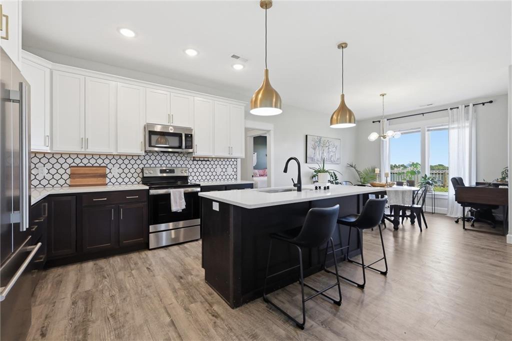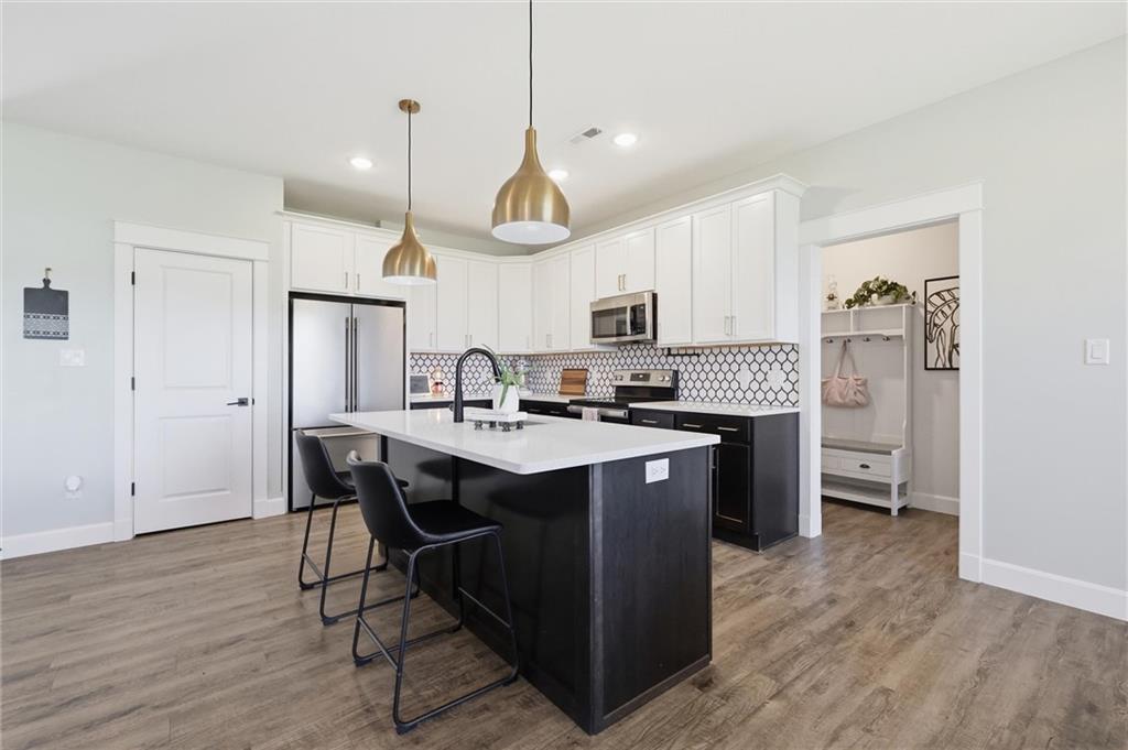 This nearly new home, built in 2023, is located in Shadow Ridge and sits directly behind Eudora Middle School. The open living space flows out to the covered back patio and fully fenced backyard. The kitchen features a large island, white quartz countertops, a walk-in pantry, and all kitchen appliances stay. The primary bedroom offers an en suite bath and a large closet, while the other two bedrooms are located on the opposite side of the home. Enjoy the benefits of a newer home with added personal touches throughout, such as fresh paint, wallpaper, and upgraded fixtures.