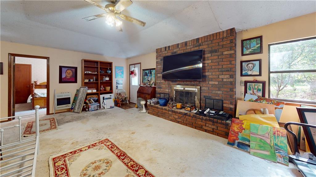 Rare Opportunity in South Joplin! Join us on May 30th for an exceptional real estate auction. Nestled on 2.4 sprawling acres with mature trees and a serene, park-like setting, this 2,002 sq. ft. home offers the perfect blend of space and comfort. Featuring 3 spacious bedrooms and 2 full bathrooms, the interior boasts a cozy brick fireplace as a centerpiece and a master suite complete with a massive walk-in closet. Practicality meets charm with an attached one-car garage and breathtaking views from every window. Auction begins at 10:00 AM; Real Estate sells at 12:00 PM Noon. Don't miss your chance to bid on this peaceful retreat!