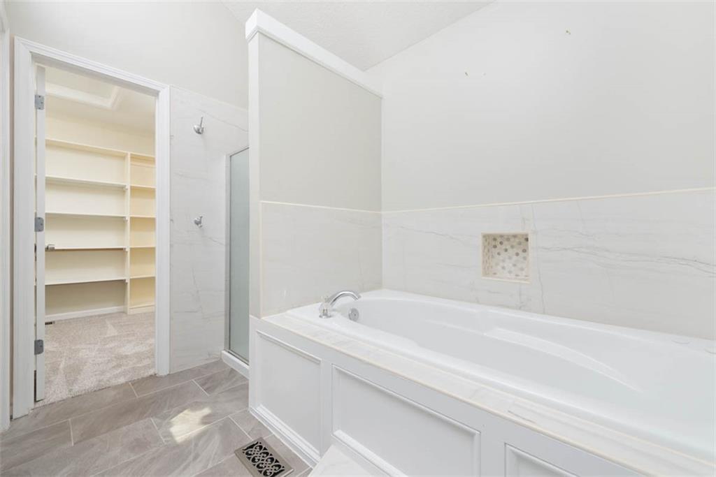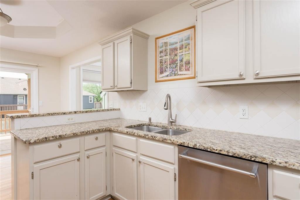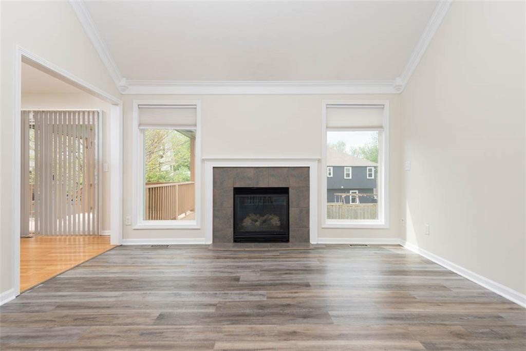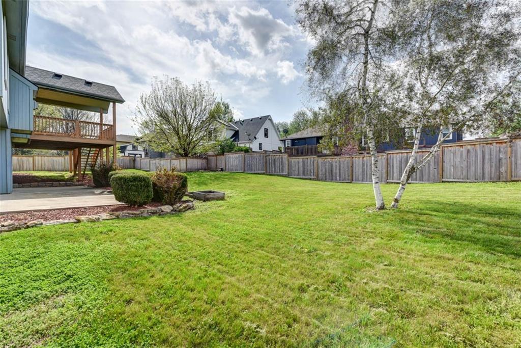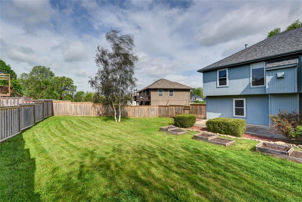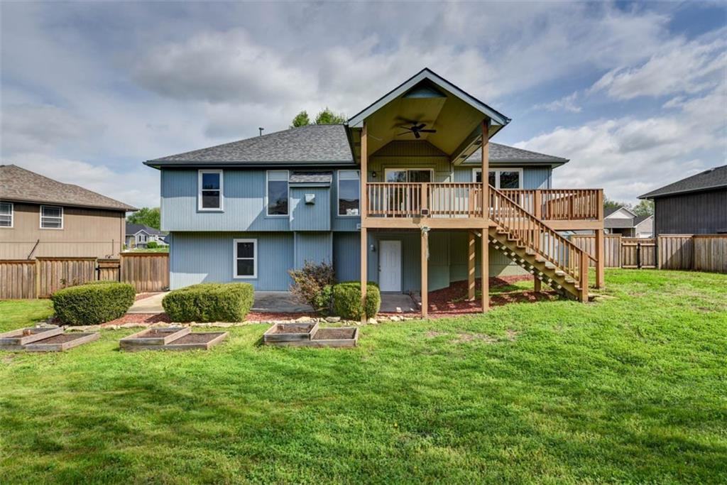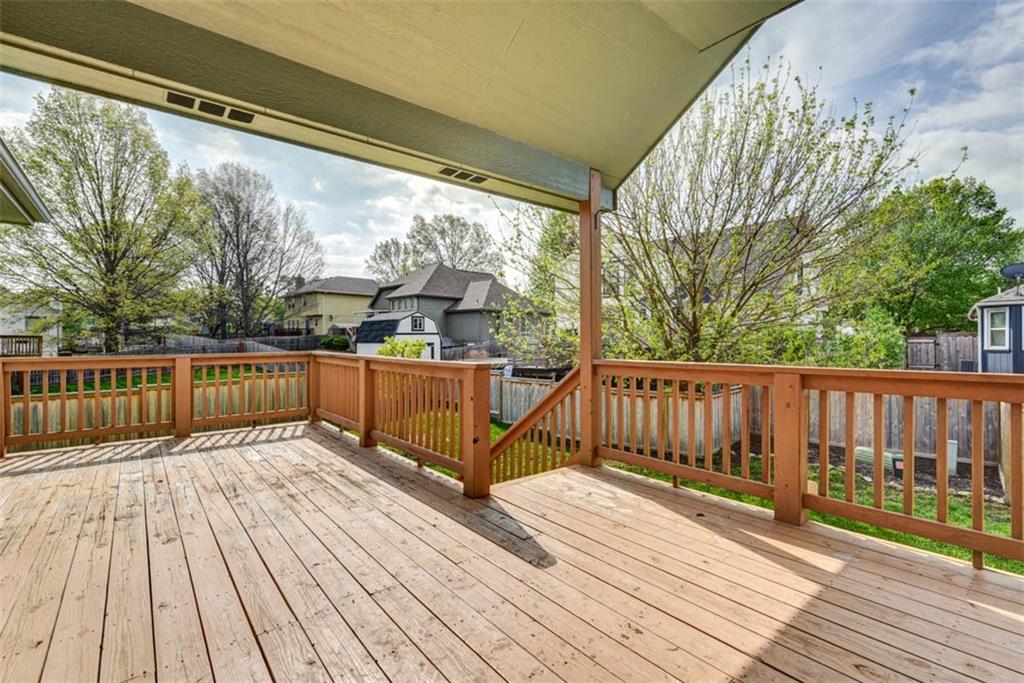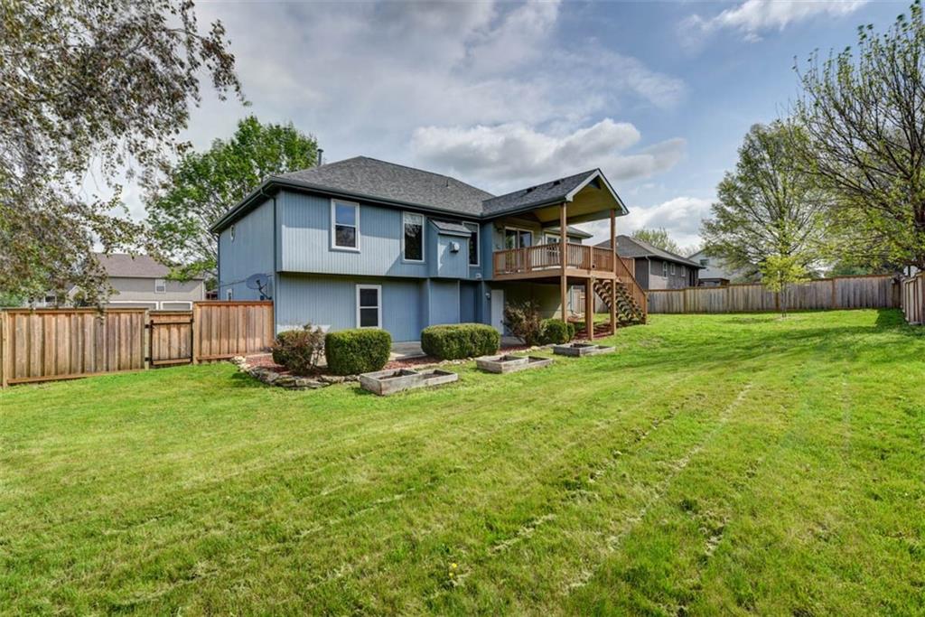 This beautiful house is rested, refreshed, and ready for its new owners!! Spacious and welcoming with great light, the living room greets you with soaring vaulted ceiling and a gas fireplace. The eat-in kitchen features wood floors, granite counters, and stainless appliances, with a walk-out door to your *covered* back deck and flat, *fenced* yard! If you need extra space for company, there's also a full dining room with a wood floor too! Primary bedroom is at one end of the hall for privacy, with NEW carpet and NEW paint - this room has a nicely updated en suite bathroom with tile floor, big tub and walk-in shower, granite double vanity, and a BIG walk-in closet. At the other end of the hall, you'll find two more bedrooms, each with ceiling fans, plus new carpet and paint! Downstairs, an easy care tiled family room walks out to patio/yard and has another gas fireplace. The basement also has that rare TRUE fourth bedroom! Big three car garage PLUS extra storage space here too for all your stuff. This house is conveniently located, with highly-rated schools, great walking nearby, easy access to shopping, dining and everything the community of Kearney has to offer!