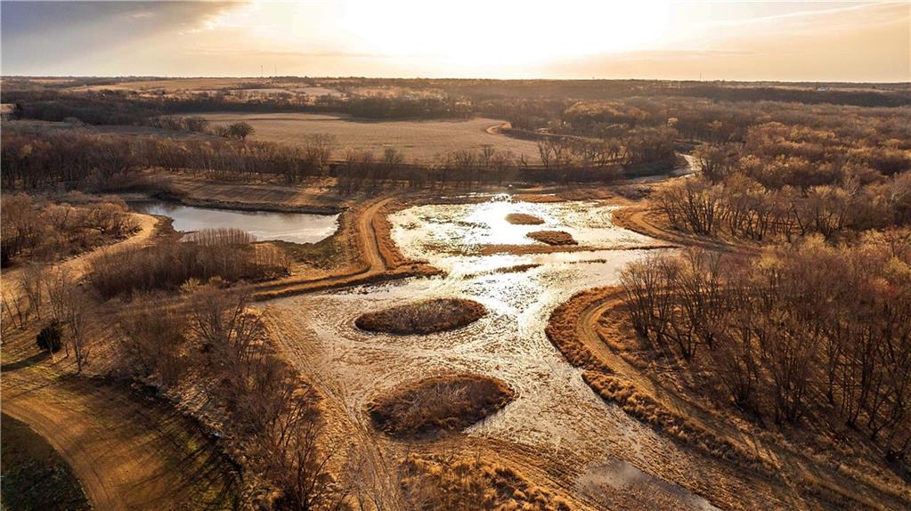 This property is a true wingshooting and whitetail haven, built around well designed habitat and first-class improvements. Over 54 acres are enrolled in WRP with more than ½ mile of Platte River frontage and a diverse wetland system anchored by two primary sloughs. Pools are filled with a PTO driven gator pump. Slough 1 spans approximately 4.5 acres, flooding to 6.5–7 feet deep. Nearby is a 1.5-acre designated food plot positioned to complement both waterfowl and deer movement. Slough 2 consists of three flood-control pools that fill in succession. Berms around both systems have been planted in various food sources over the years, and each pool includes shooting mounds and nesting cover, ready for pit installation if desired. Roughly 10 acres of the WRP are marshy timber drawing wood ducks, teal, and woodcock. Warm-season grass near Slough 2 add diversity for quail and dove. Along with the wetlands are 37± acres of tillable ground with rich silt loam soils, much of which average in the 80s on the NCCPI scale. Two fish ponds add year-round recreation, including one extensively reinforced and supplemented with bentonite to reduce leakage and improve long-term water retention, and several PVC and Cinder block fish nesting habitat structures have been added during pond renovations. At the center sits a 3,000± sq ft modern rustic lodge with interior and exterior stone fireplaces, a large common area, bar, game-cleaning station, executive bunk room, and multiple baths for hosting groups. Up the drive is a 960± sq ft guest cabin with 2 beds, 1 bath, garage, efficient kitchen, and a porch overlooking the pond and lodge. Additional improvements include a heated dog kennel, 860± sq ft heated/insulated equipment shed, and a 12x20 decoy shed. See also MLS #2604294 (Full Farm) & MLS #2604830 (Tract 2)