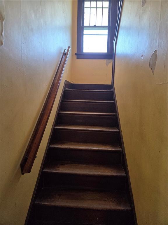 Dark wood-finish staircase with a matching wood handrail