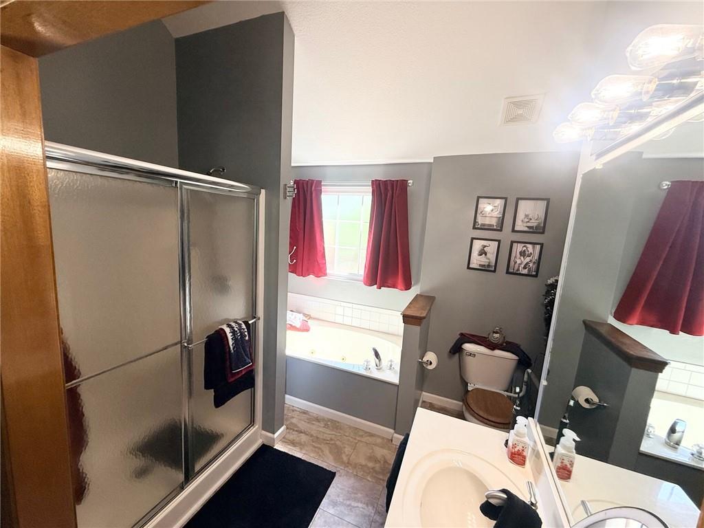 This is an amazing home! Many updates and newer items including Roof, awesome backyard deck, privacy fence, upgraded landscaping, quartz kit countertops, stainless steel appliances, carpeting, plank flooring, most of the interior light fixtures, electrical panel, rear door slider and some windows. The HVAC system is approx 10 yrs old, and this home has a water purifying system that stays. You can see much care has gone into this beautiful home from the pics and this list! It's not only beautiful but it's a super comfortable home to relax in with plenty of play space in the finished walk out lower level and large backyard space. You will also like the spacious built in 3 car garage that has an added electric ceiling heater to keep it comfortable in our cold winter months!