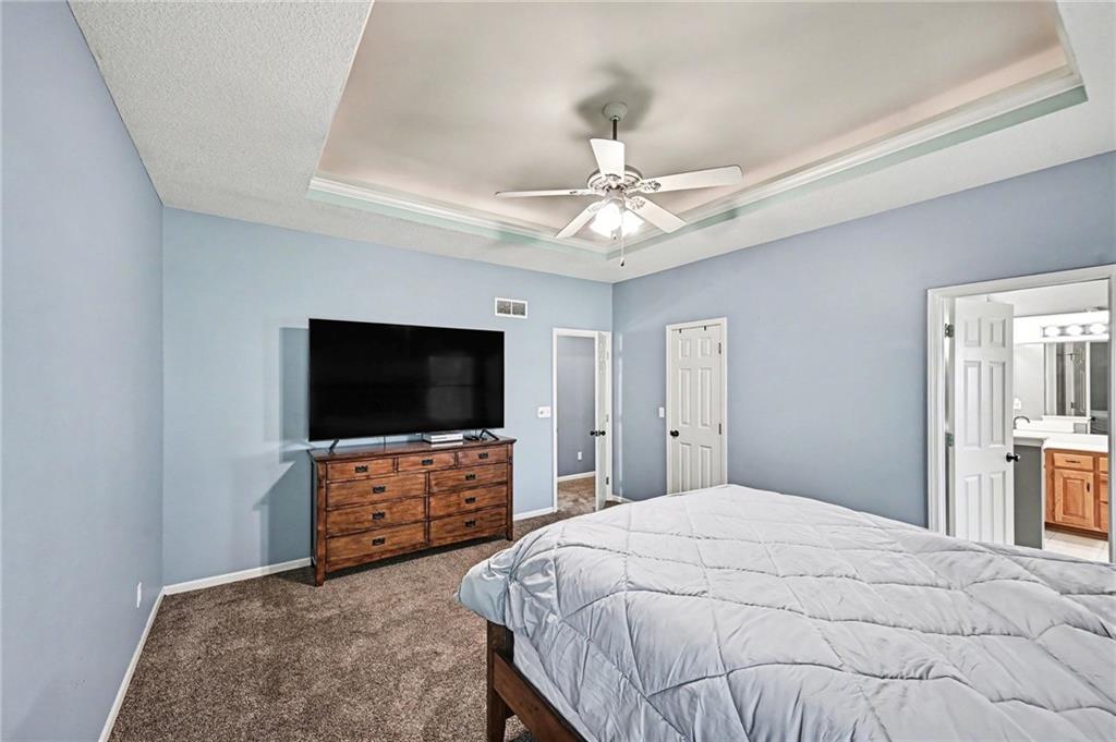 As you approach the home, you’re welcomed by beautifully maintained landscaping that creates an inviting first impression. Inside, the living room features soaring ceilings and an abundance of natural light, with a cozy fireplace perfect for relaxing during the winter months. The eat-in kitchen serves as a wonderful gathering space for everyday meals and entertaining. A conveniently located main floor laundry room adds to the home’s functionality. The spacious primary suite offers ample closet space and a large en-suite bathroom complete with double sinks. The additional bedrooms are all generously sized. The finished basement is ideal for entertaining or unwinding, featuring a large wet bar, full bathroom, and an additional bedroom. Step outside to the fenced backyard, where a private patio is surrounded by mature trees and more beautiful landscaping, perfect for enjoying the outdoors in comfort.
